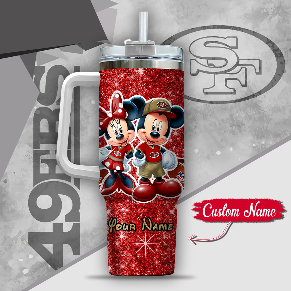 Nfl San Francisco 49Ers Mickey And Minnie Couple Custom Stanley Quencher 40Oz Stainless Steel Tumbler With Handle