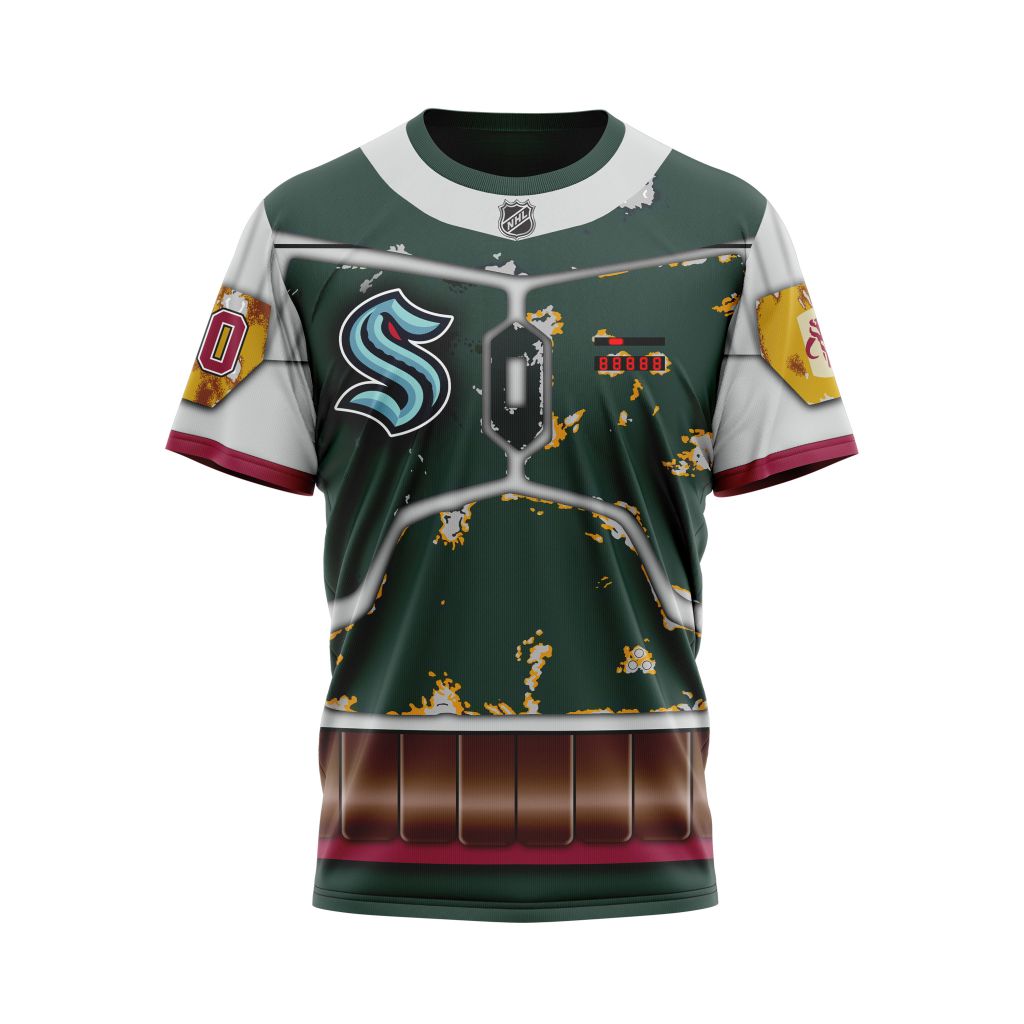 NHL Seattle Kraken X Boba Fetts Armor Specialized Design For Star Wars Fourth Of July AOP T-Shirt