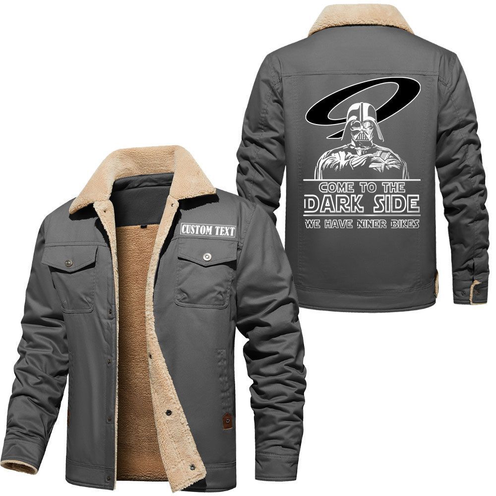 Niner Bikes Logo Custom Name Cargo Fleece Lined Cotton Jacket Personalized Outerwear with Dark Side Star Wars Design