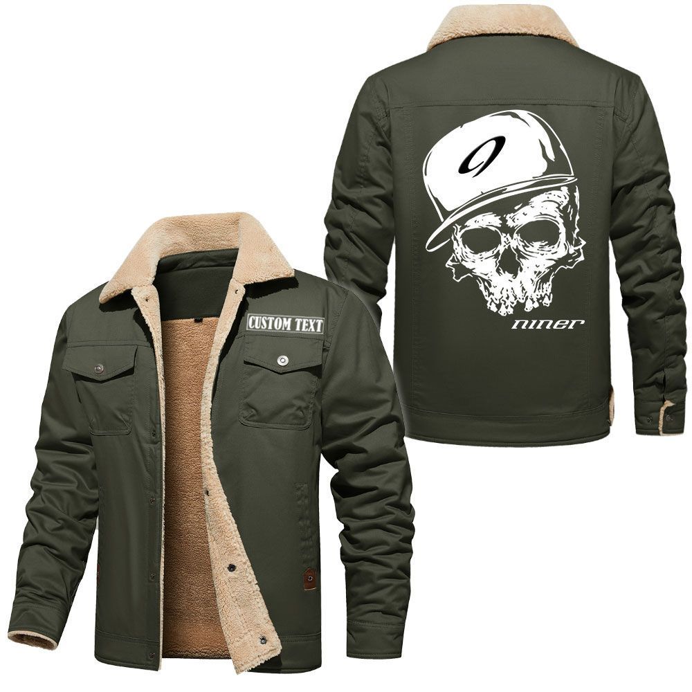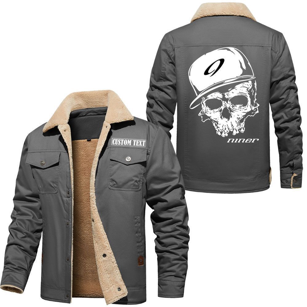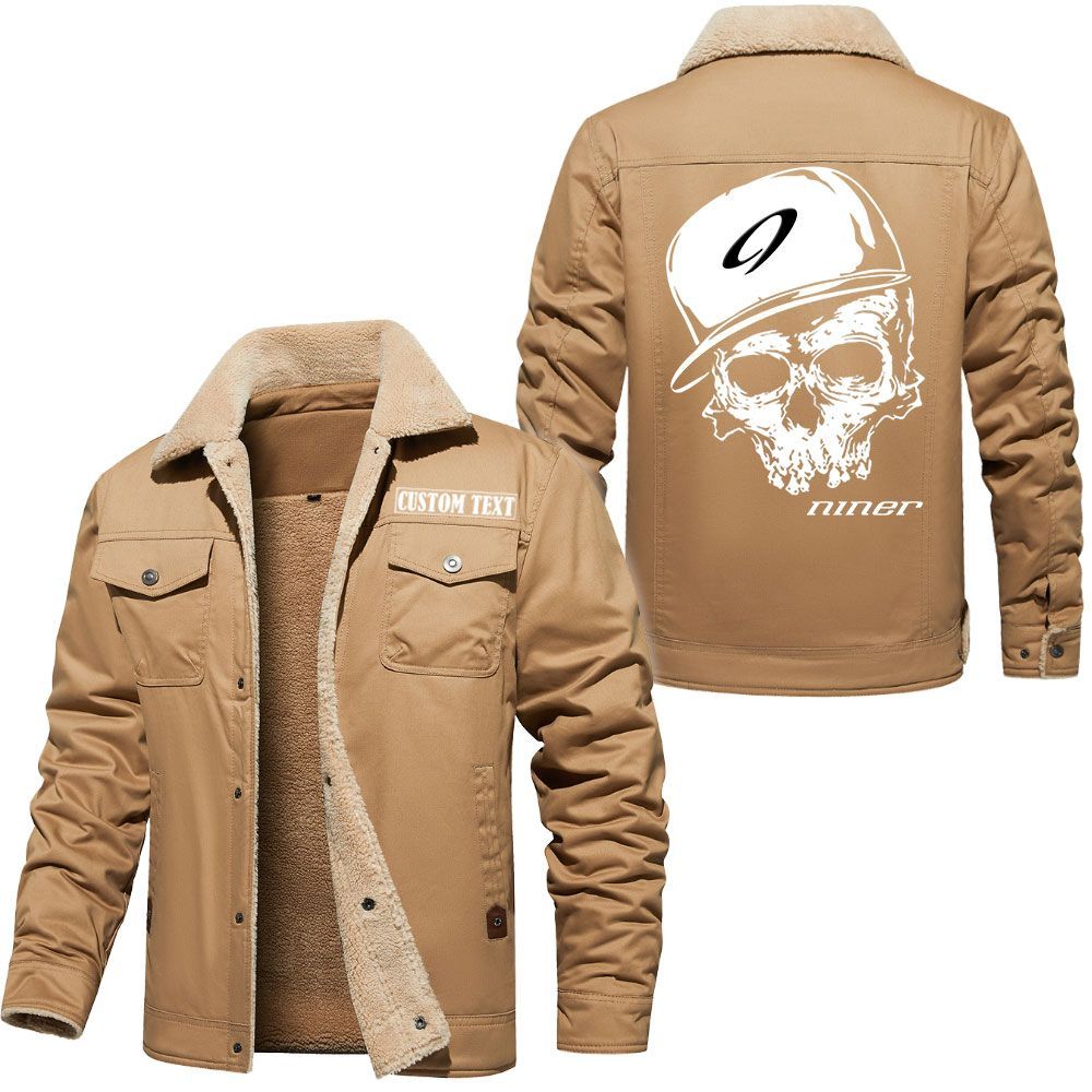 Niner Bikes Logo Custom Name Cargo Fleece Lined Cotton Jacket Personalized Outerwear with Skull Design