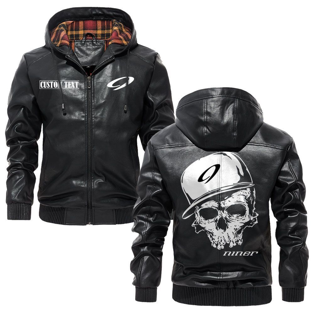 Niner Bikes Logo Custom Name Leather Hoodie Jacket Warm Outerwear with Skull Design