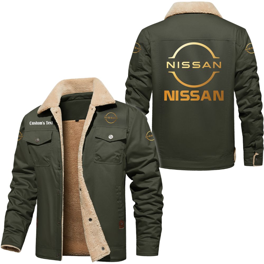 Nissan Golden Logo Custom Cargo Fleece Lined Cotton Jacket Army Green