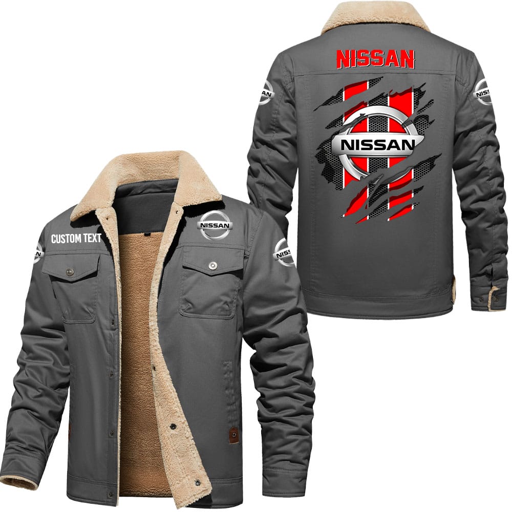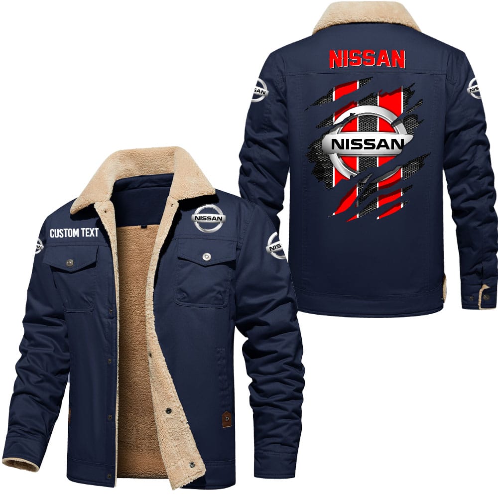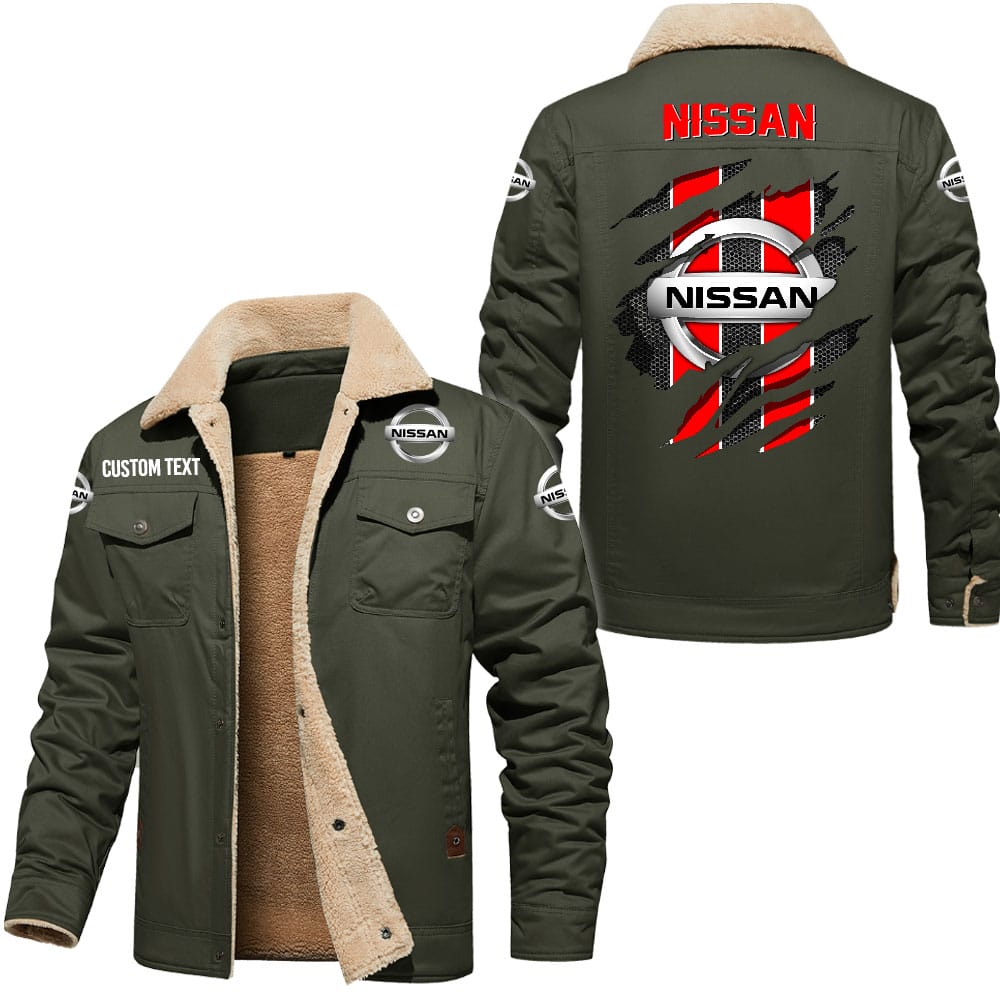 Nissan Logo Custom Name Cargo Fleece Lined Cotton Jacket