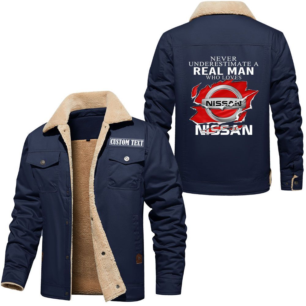 Nissan Logo Custom Name Cargo Fleece Lined Cotton Jacket A Real Man Who Loves Personalized Outerwear