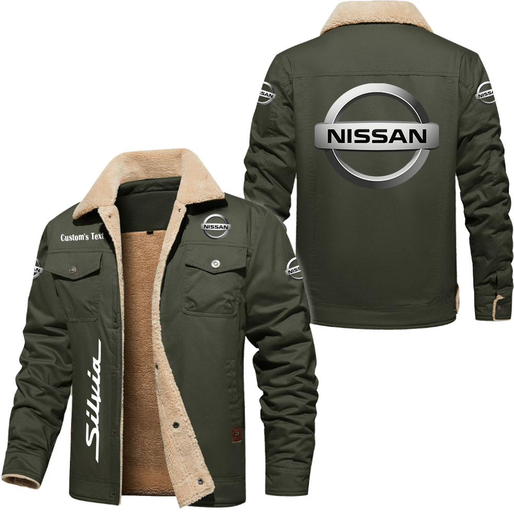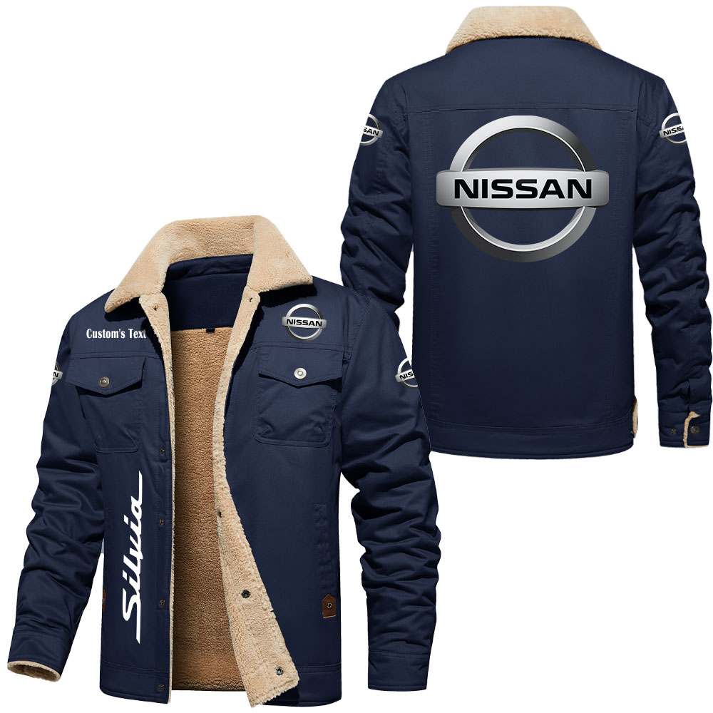 Nissan Silvia Logo Custom Text Cargo Fleece Lined Cotton Jacket