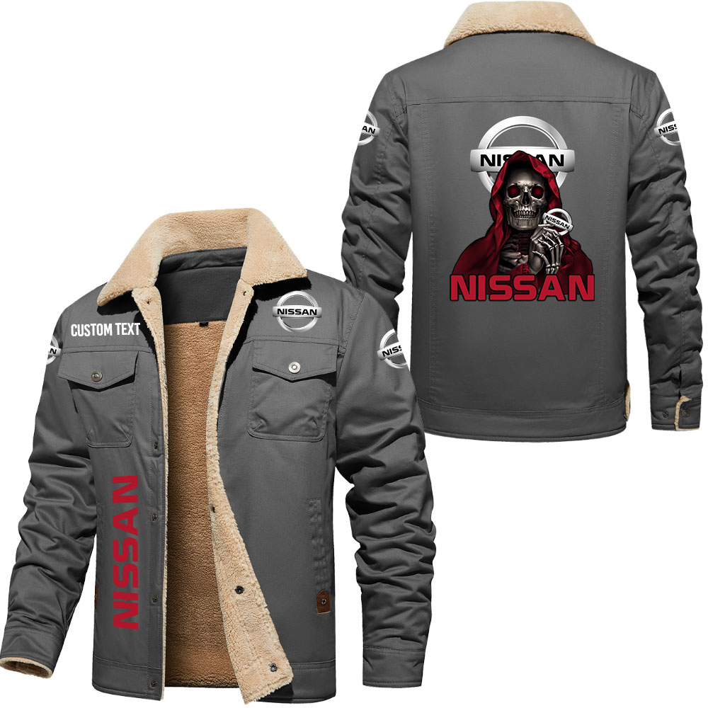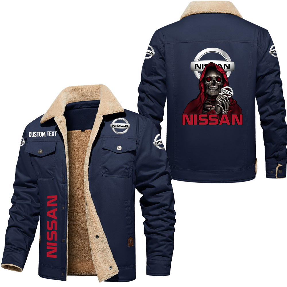 Nissan Skull Art Print Custom Name Cargo Fleece Lined Cotton Jacket