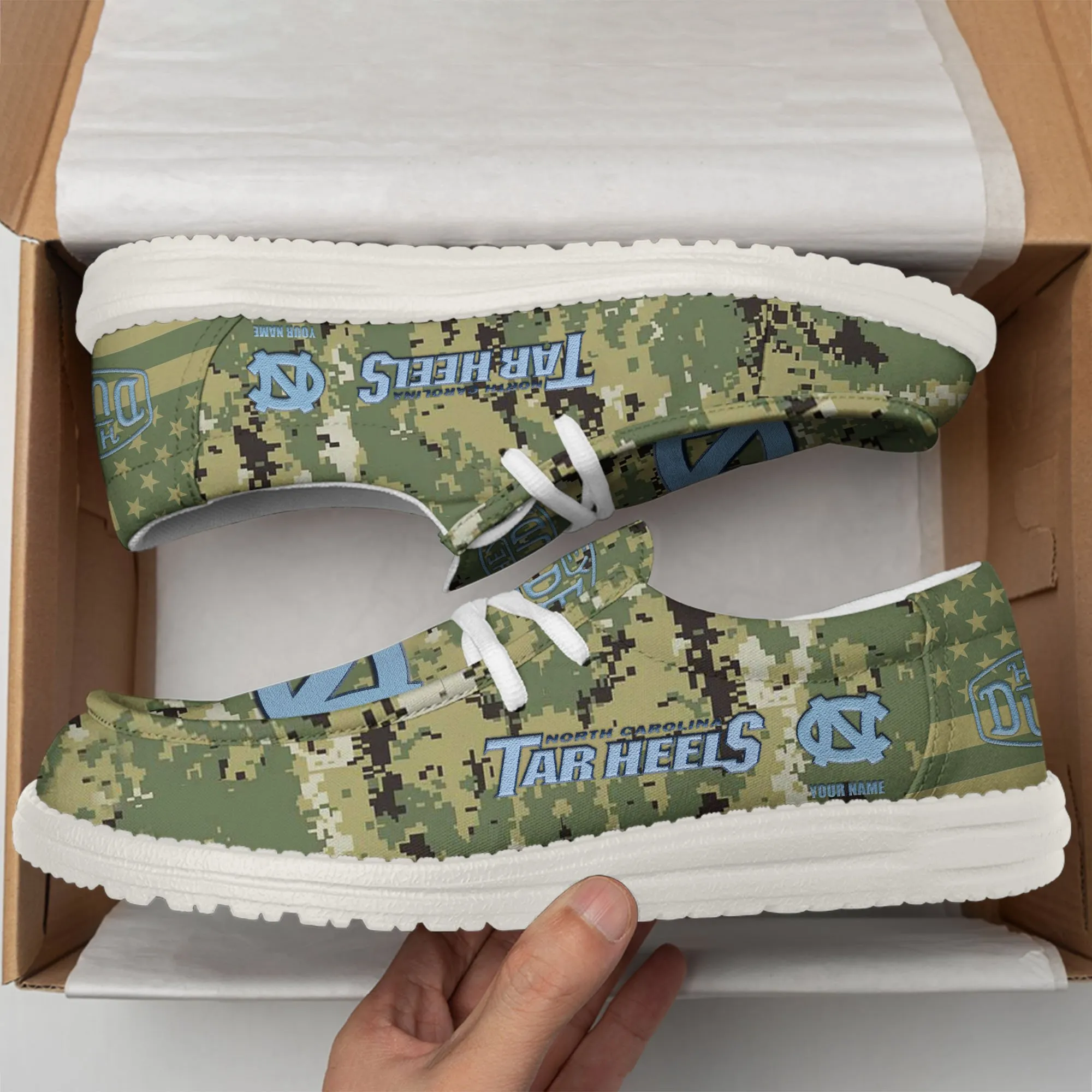 North Carolina Tar Heels 3D Print Dude Shoes Camo Green Best Gift For Sport Fan