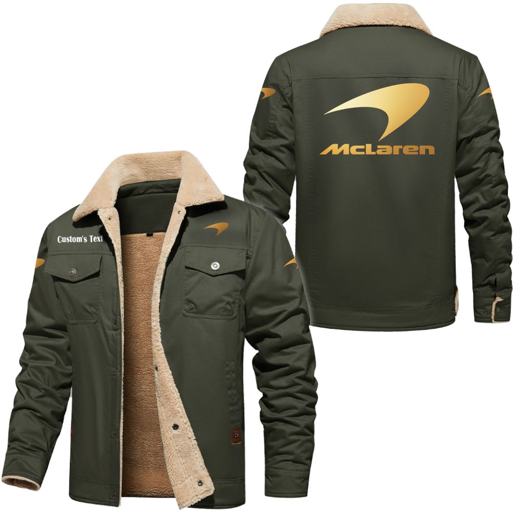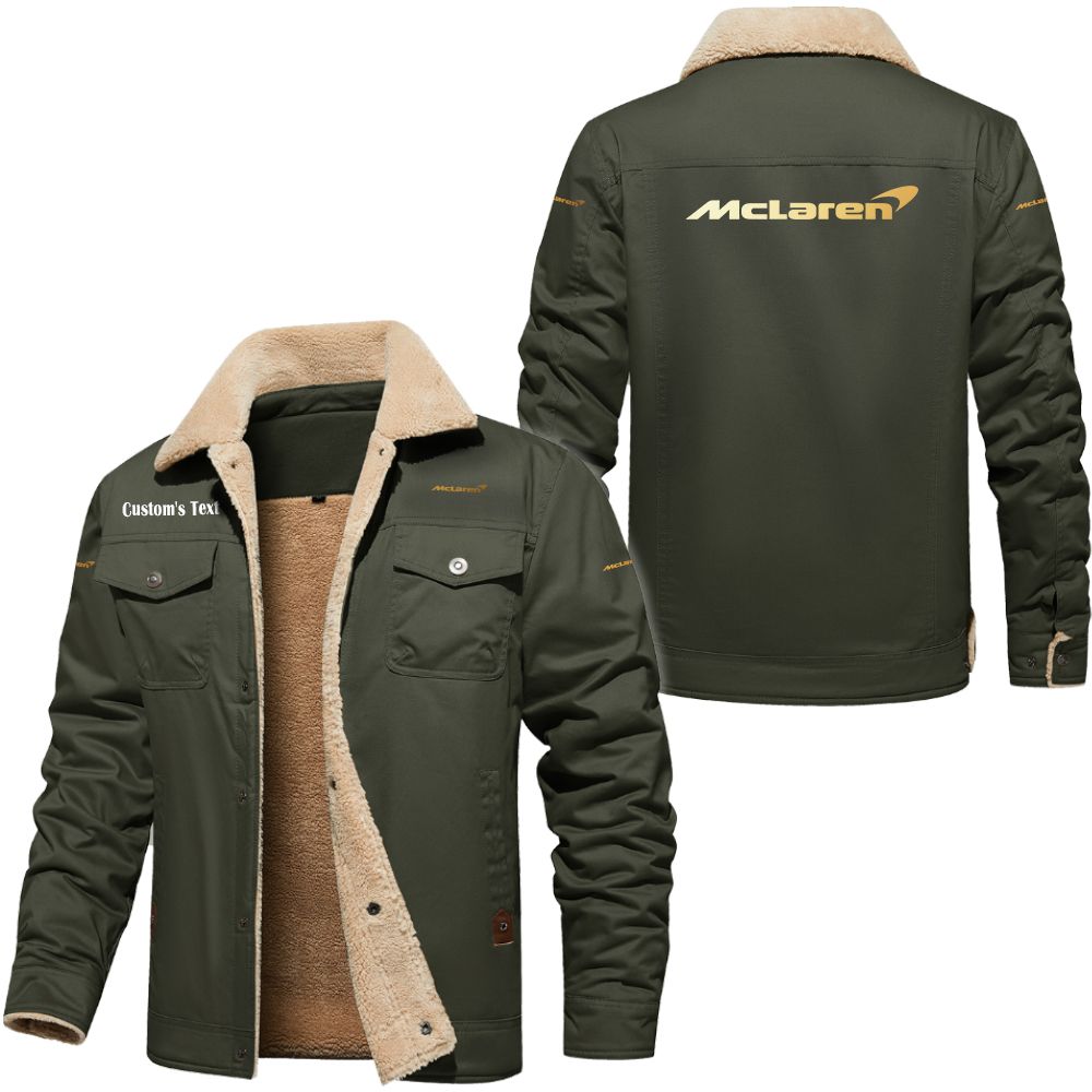 Norton Motorcycle Golden Logo Custom Cargo Fleece Lined Cotton Jacket Army Green