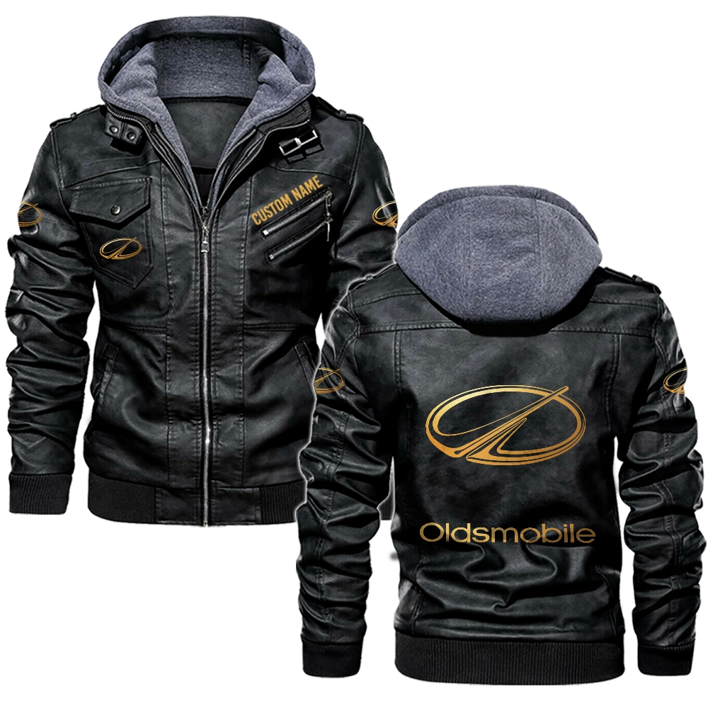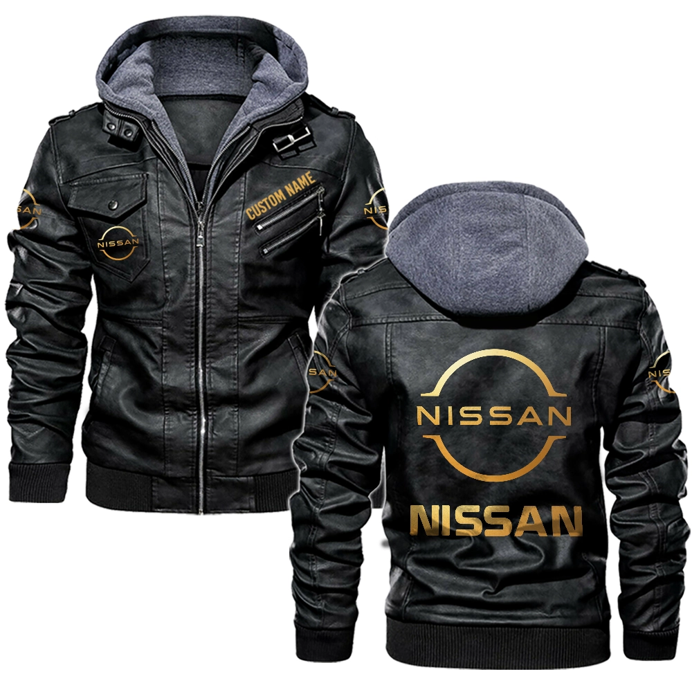 Norton Motorcycle Golden Logo Custom Hooded Leather Jacket Black