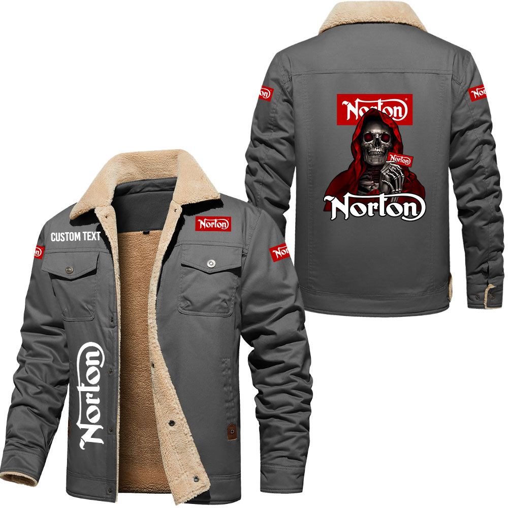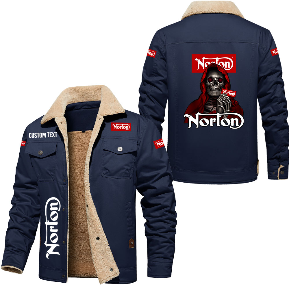 Norton Motorcycle Skull Art Print Custom Name Cargo Fleece Lined Cotton Jacket