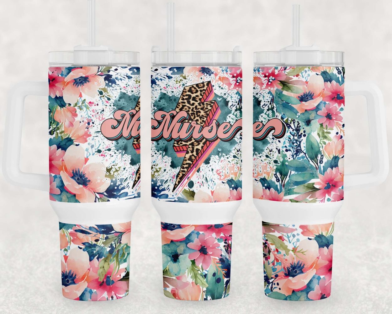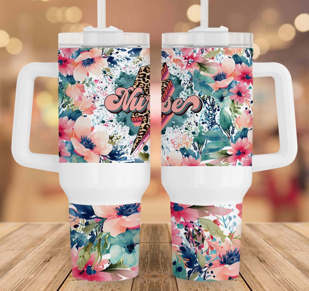 Nurse Watercolor Floral Custom Stanley Quencher 40Oz Stainless Steel Tumbler With Handle