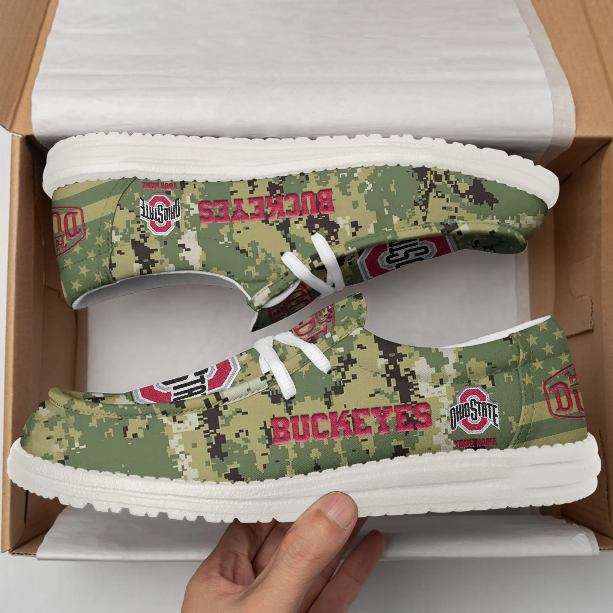 Ohio State Buckeyes 3D Print Dude Shoes Camo Green Best Gift For Sport Fan