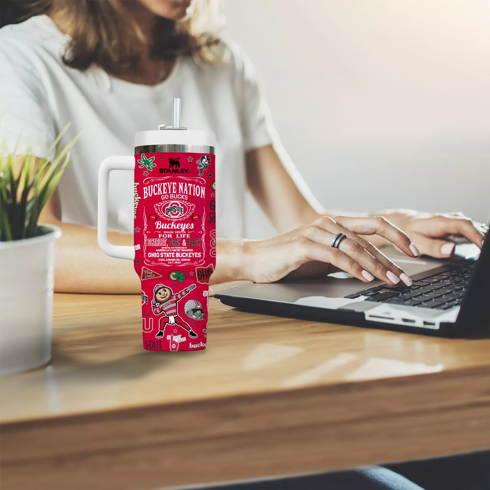 Ohio State Buckeyes Travel Mug Insulated Stanley Cup With Handle 40Oz Ultimate Fan Gear