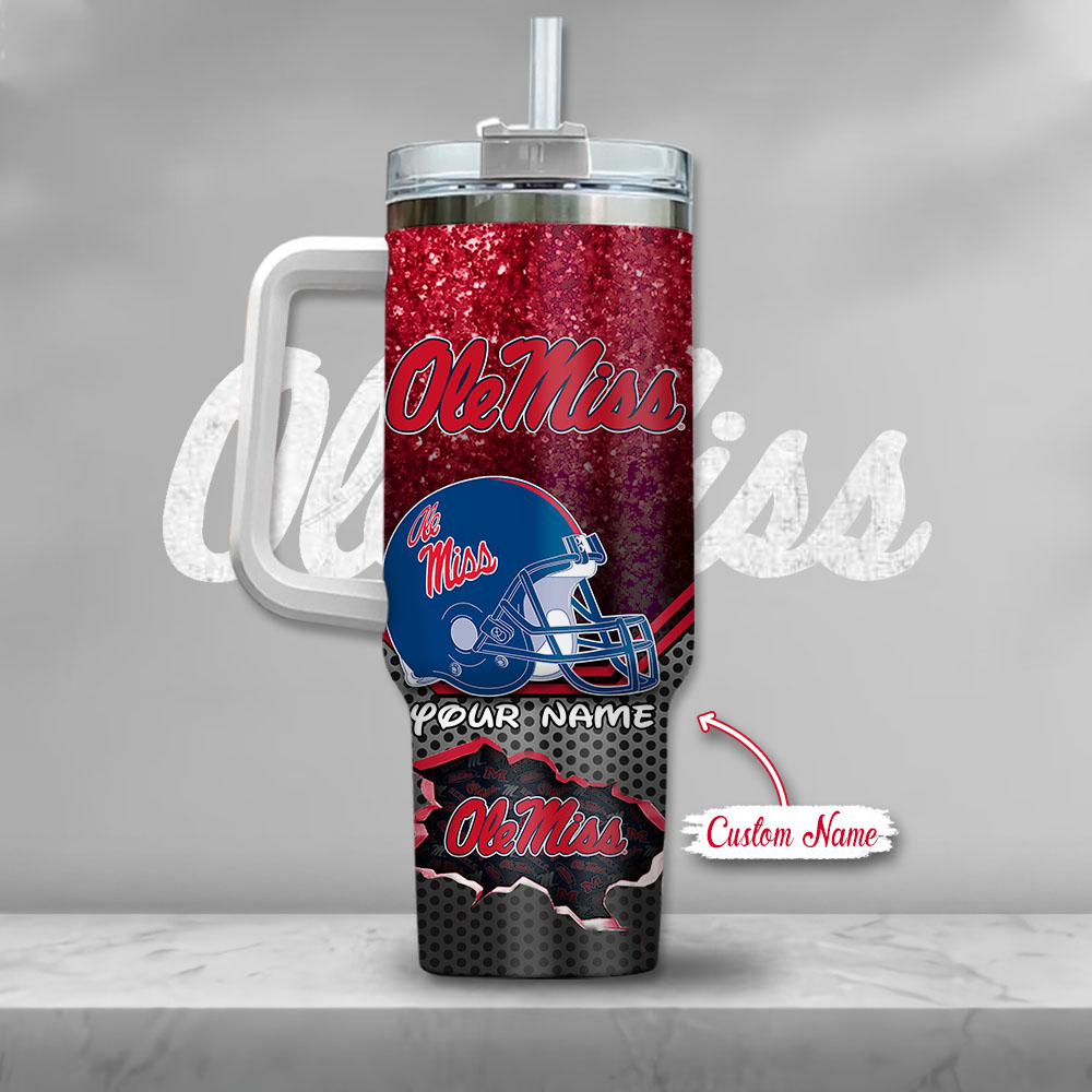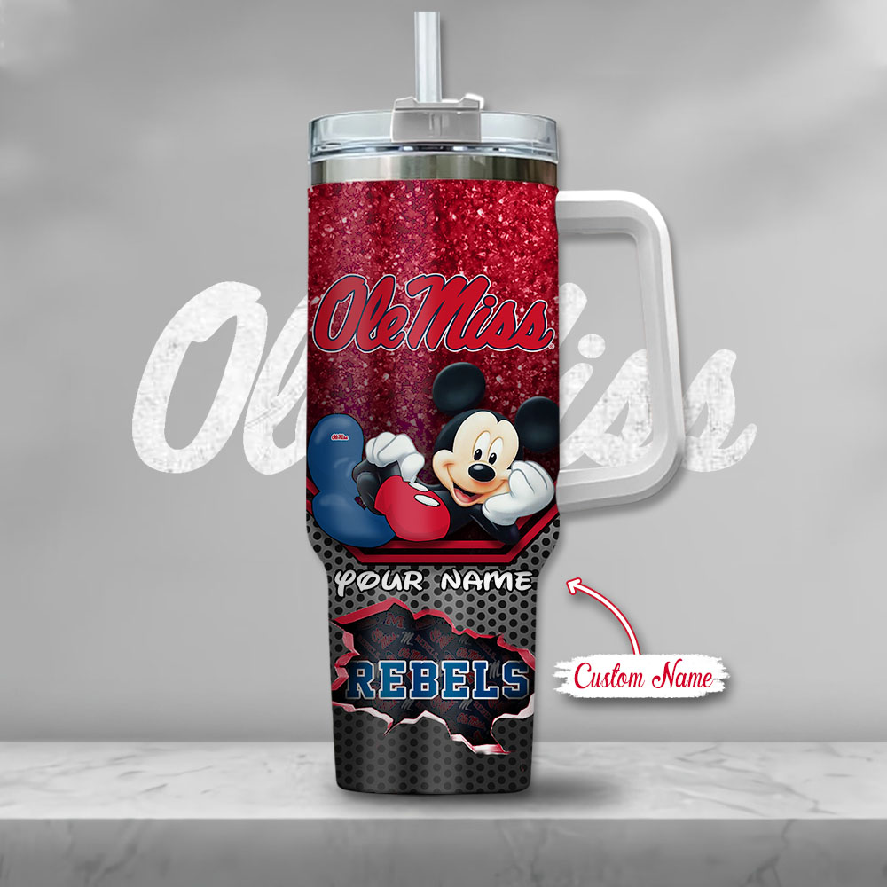 Ole Miss Rebels Ncaa Mickey Mouse Custom Stanley Quencher 40Oz Stainless Steel Tumbler With Handle