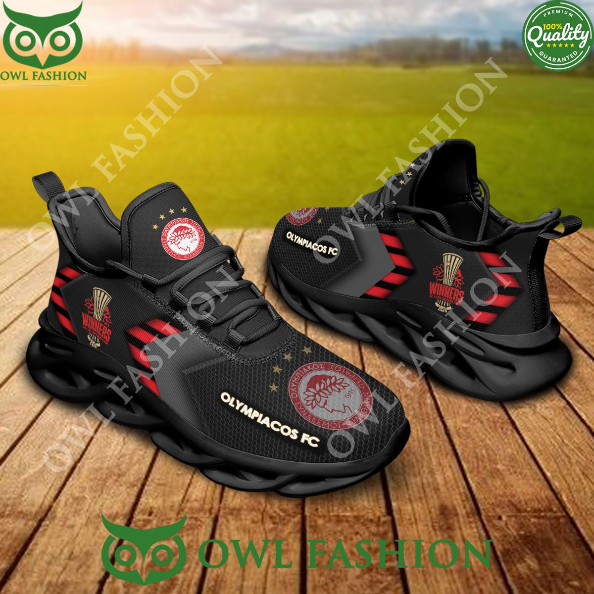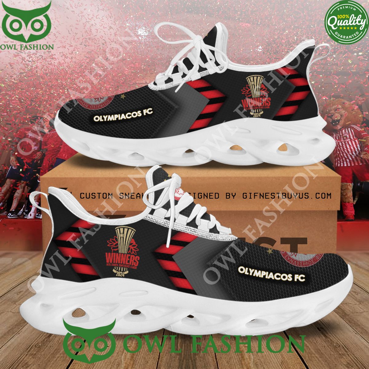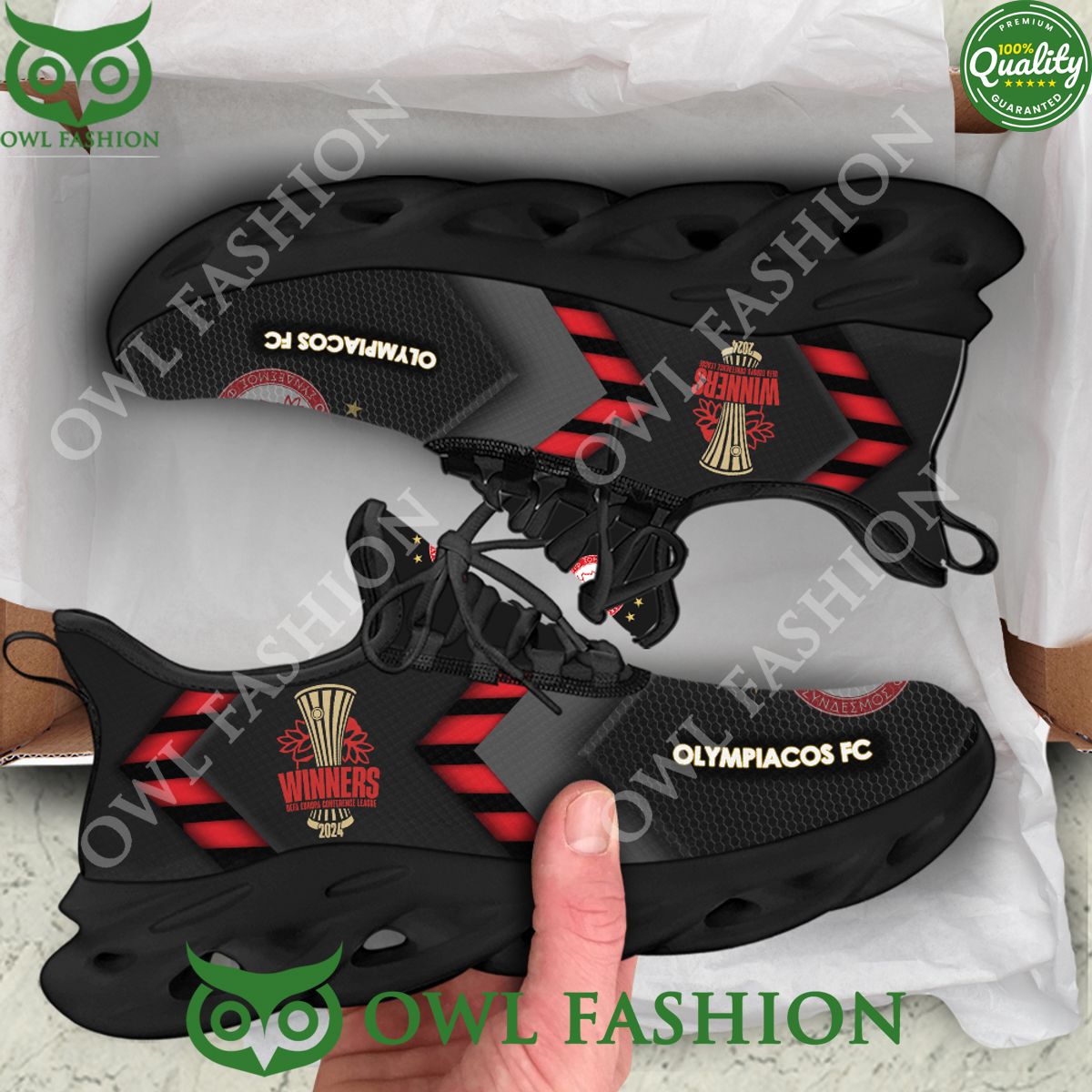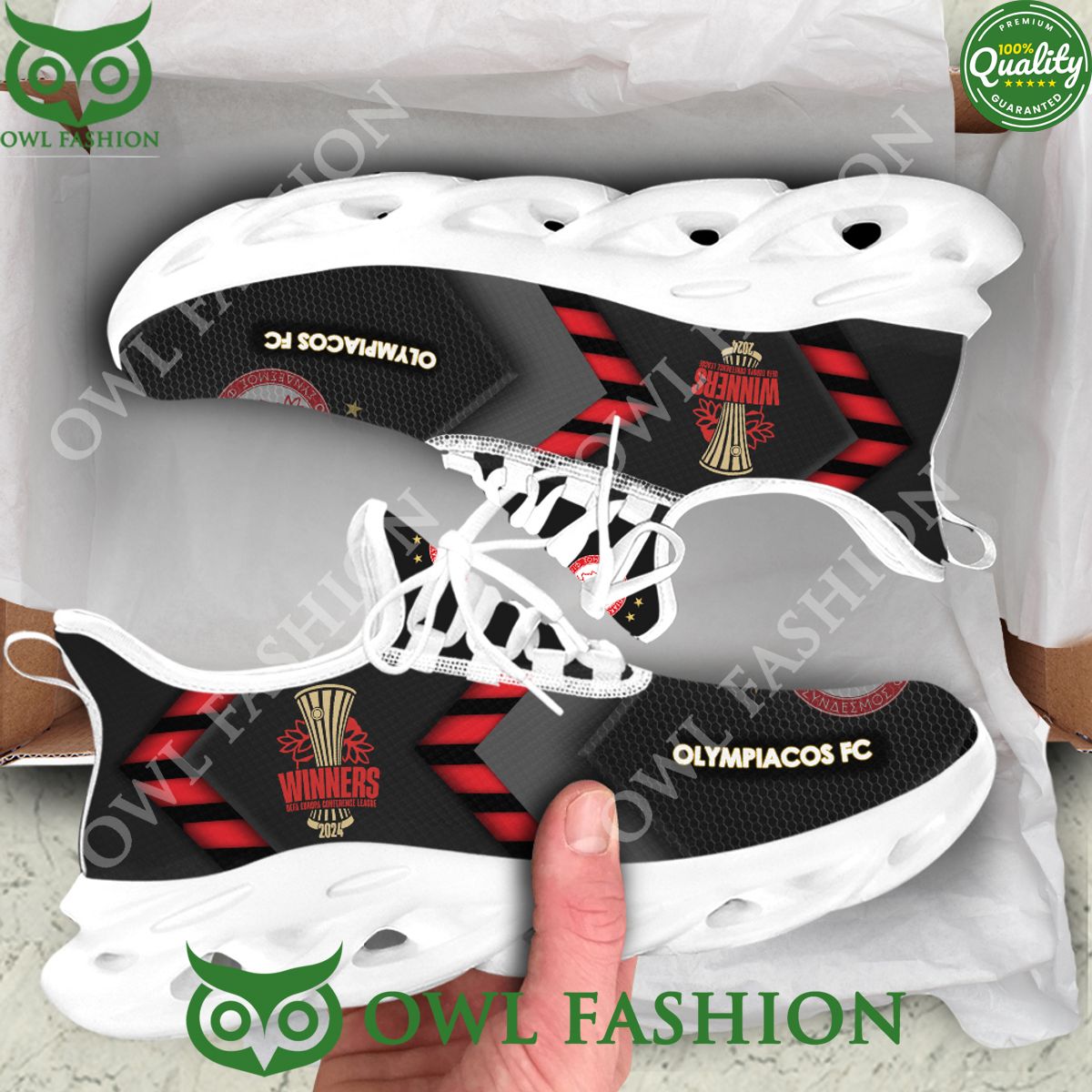 Olympiacos FC Max Soul Shoes Sneakers Printed White And Black Sole For Men And Women