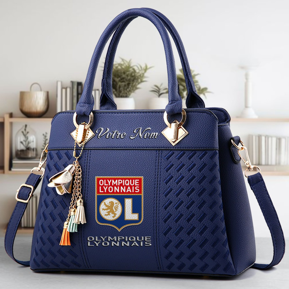 Olympique Lyonnais Logo Crossbody Zip Hand Bag With Tassel Custom Name For Women