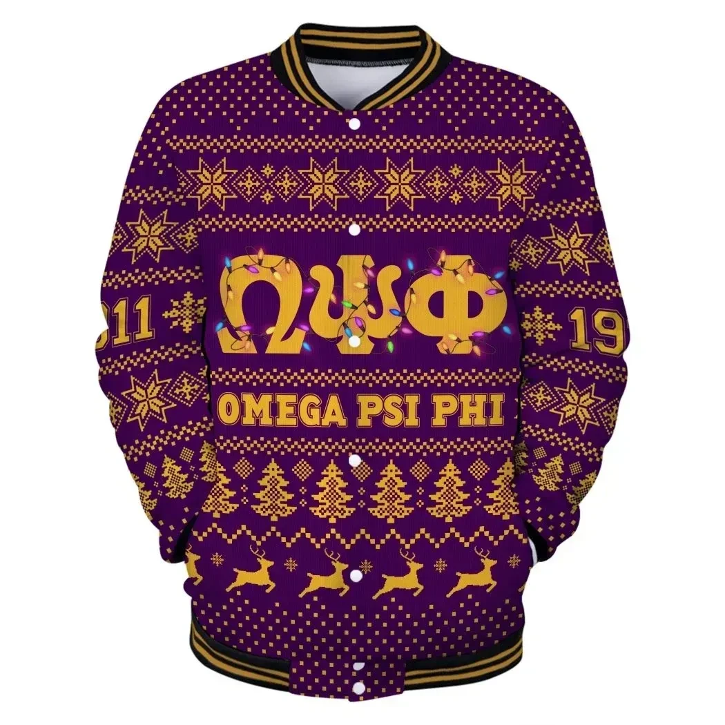 Omega Psi Phi Burberr Style Baseball Jacket N