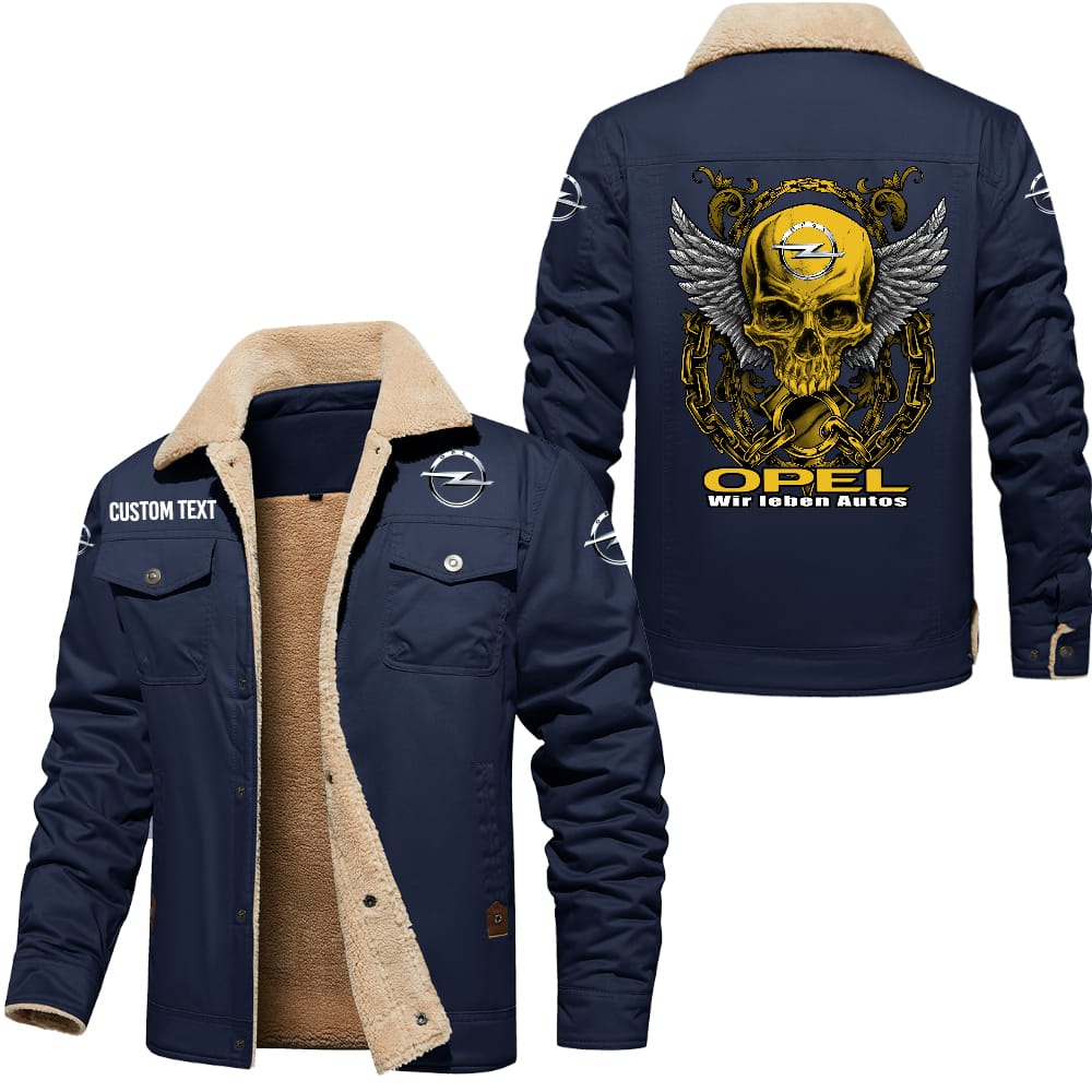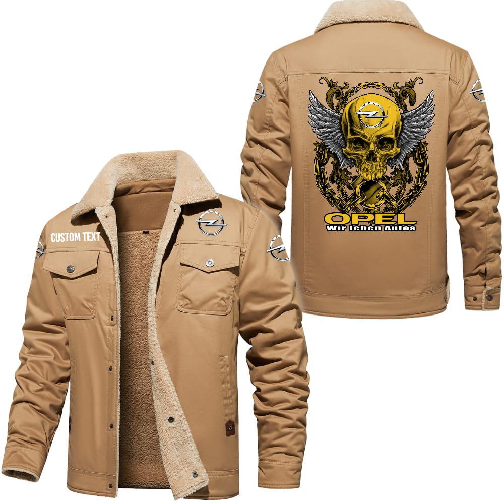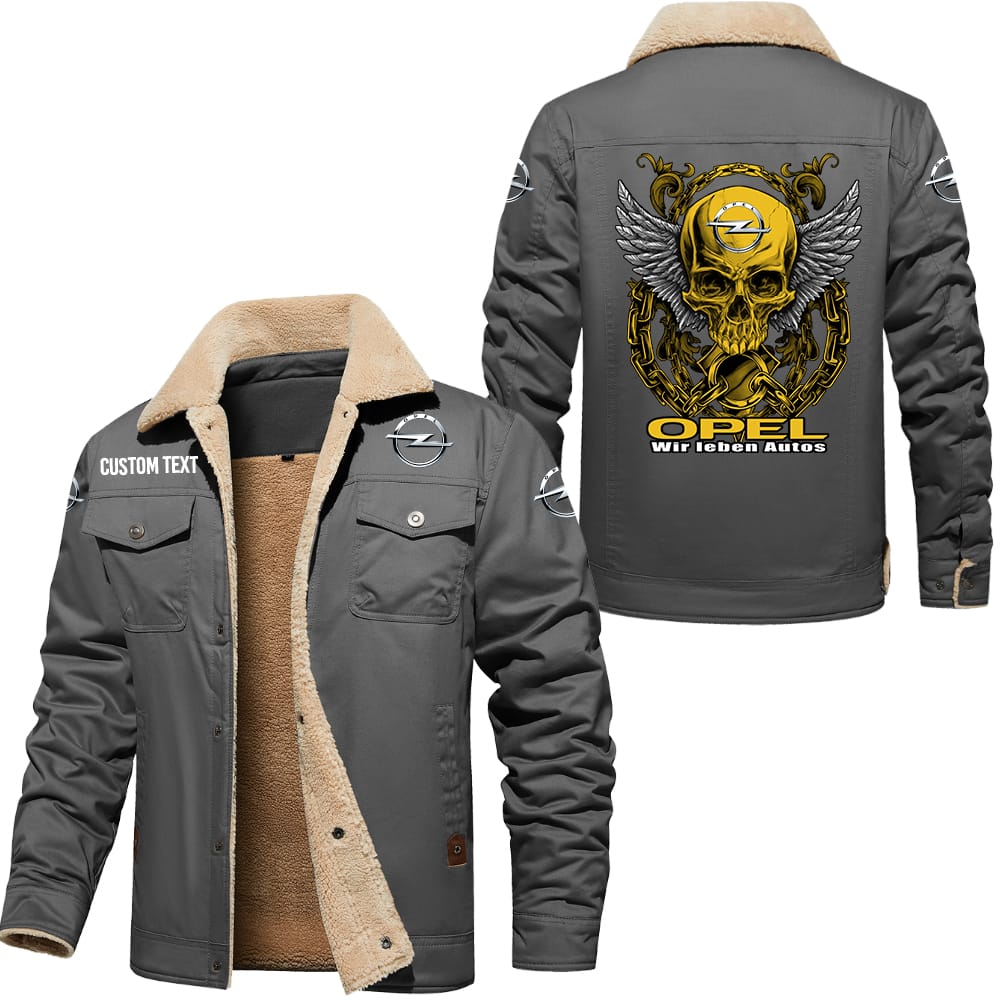 Opel Custom Name Skull Design Cargo Fleece Lined Cotton Jacket