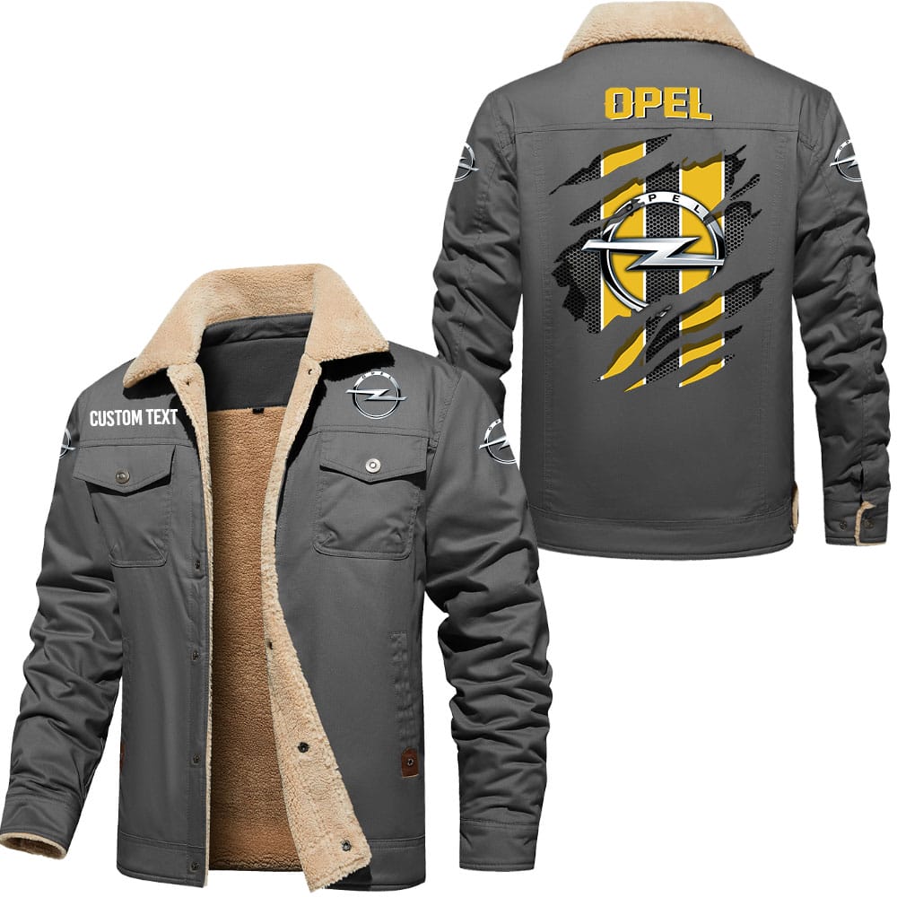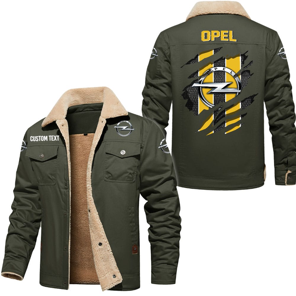 Opel Logo Custom Name Cargo Fleece Lined Cotton Jacket