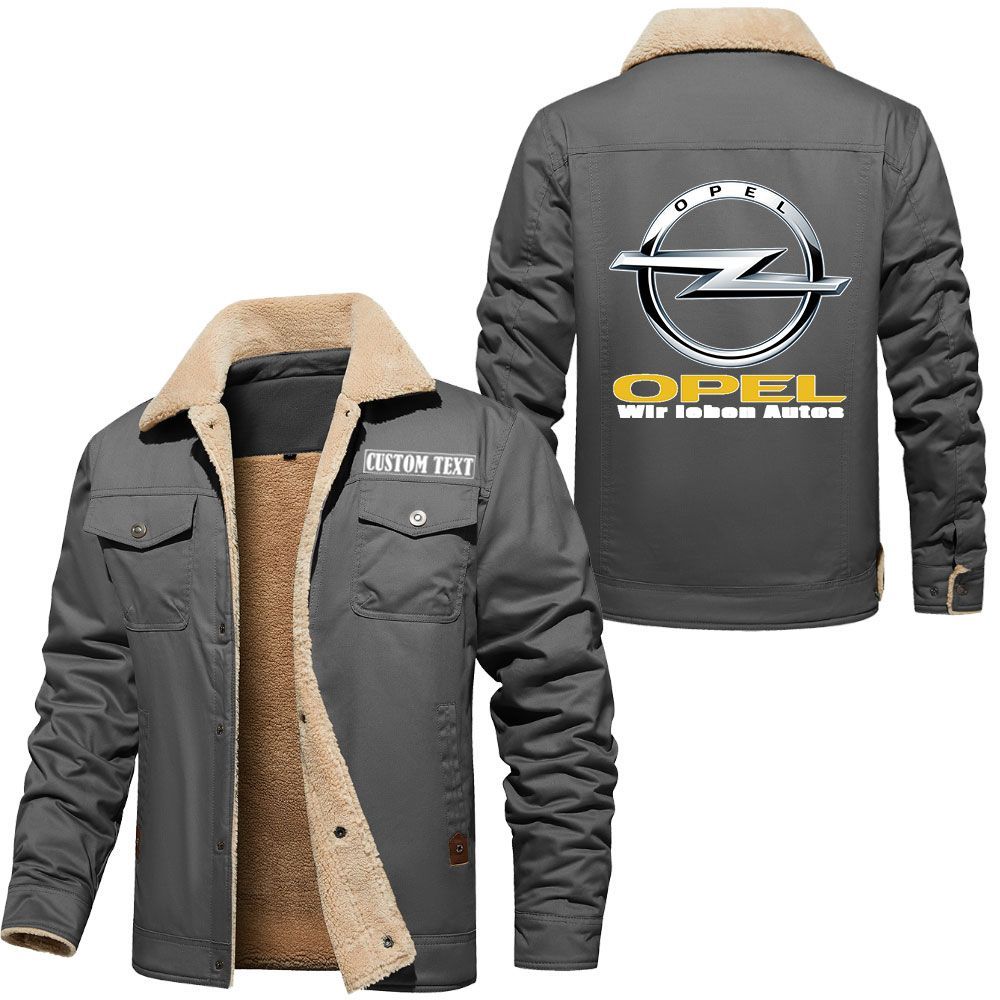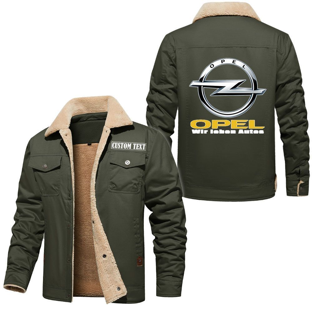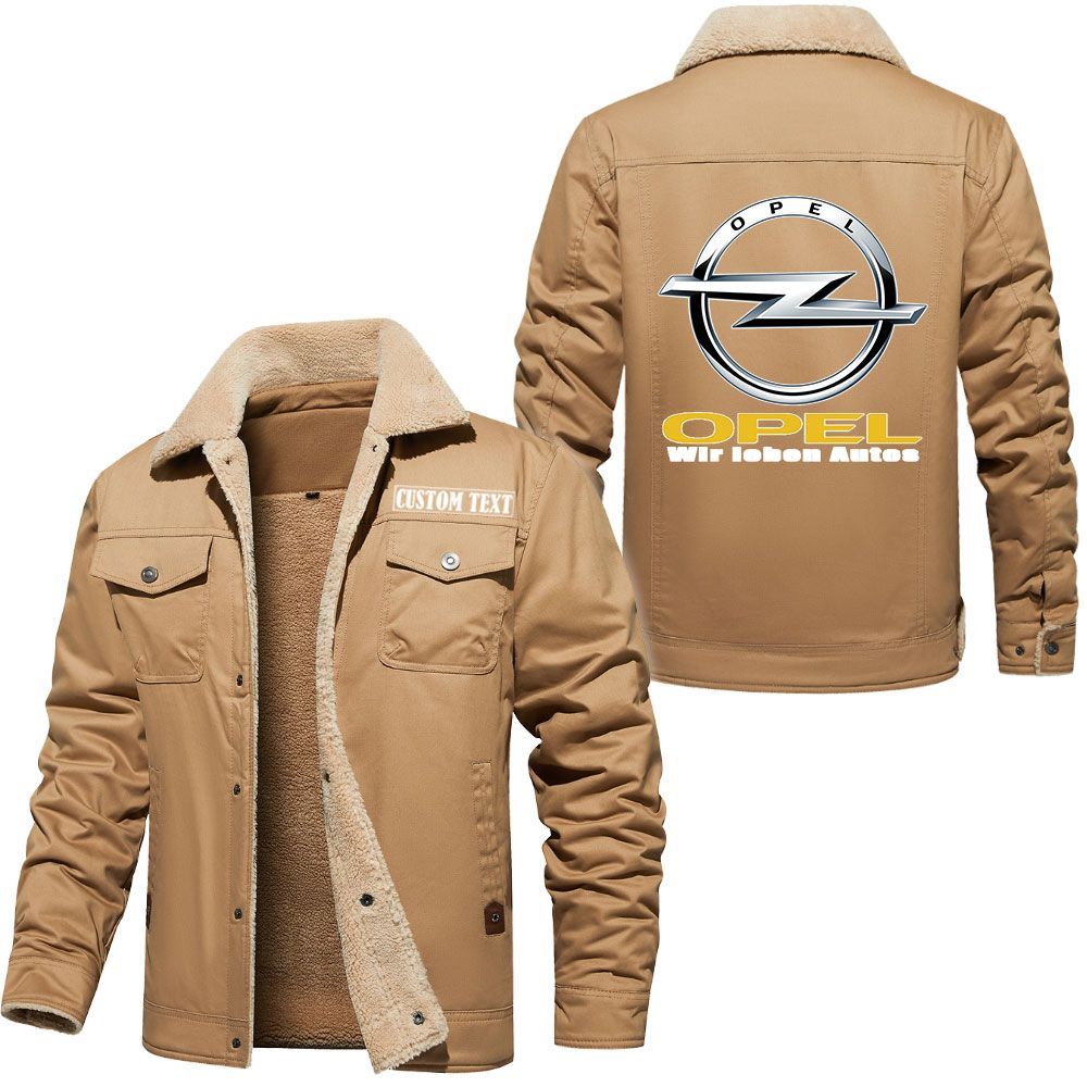 Opel Logo Custom Name Cargo Fleece Lined Cotton Jacket Stylish Warm Personalized Outerwear