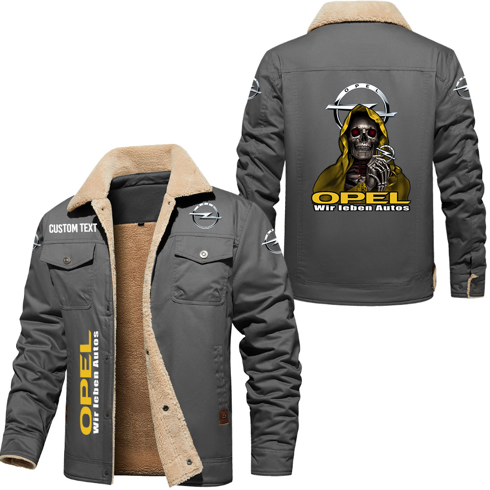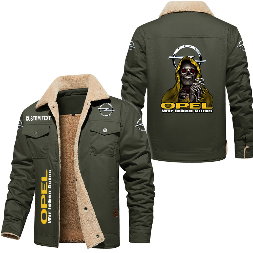 Opel Skull Art Print Custom Name Cargo Fleece Lined Cotton Jacket