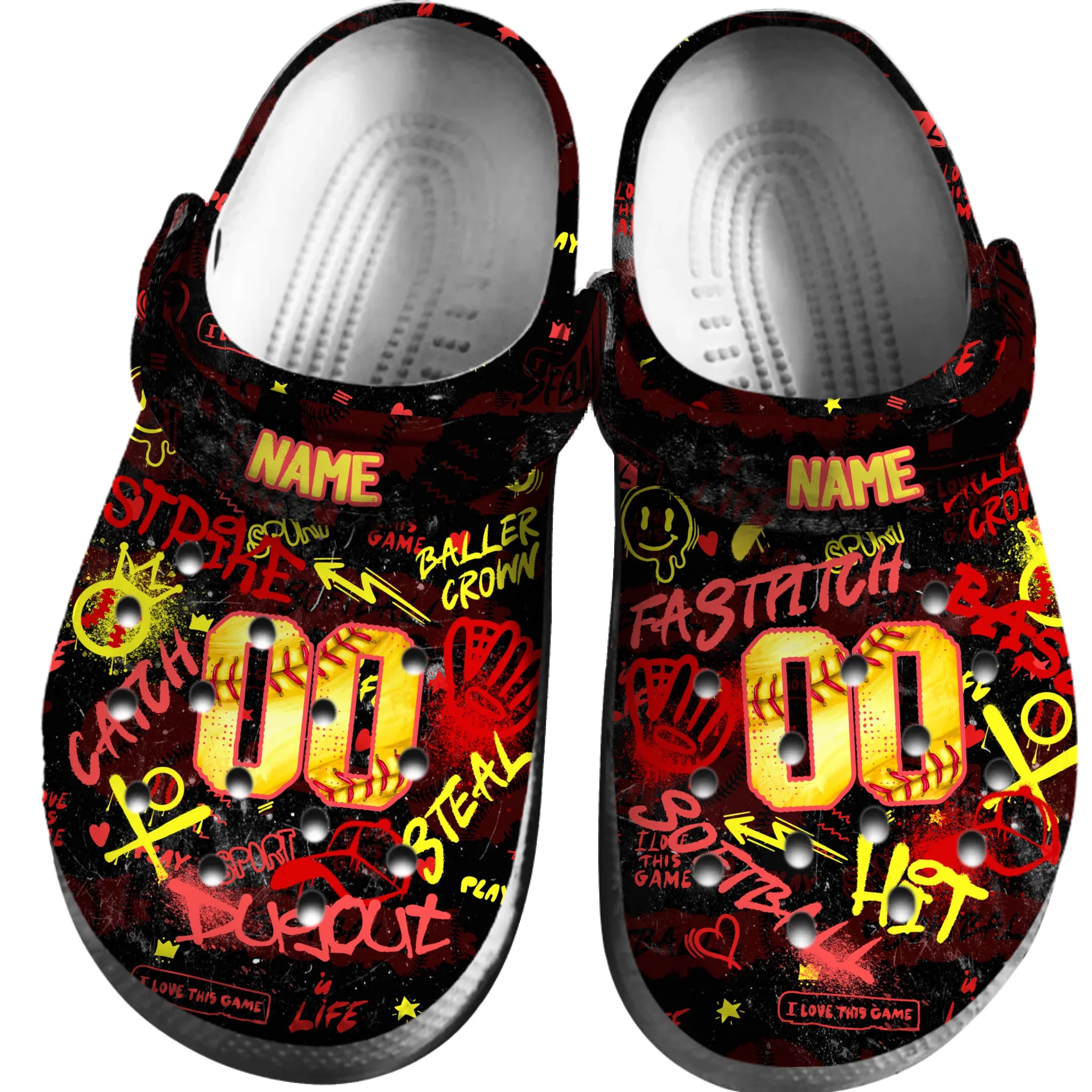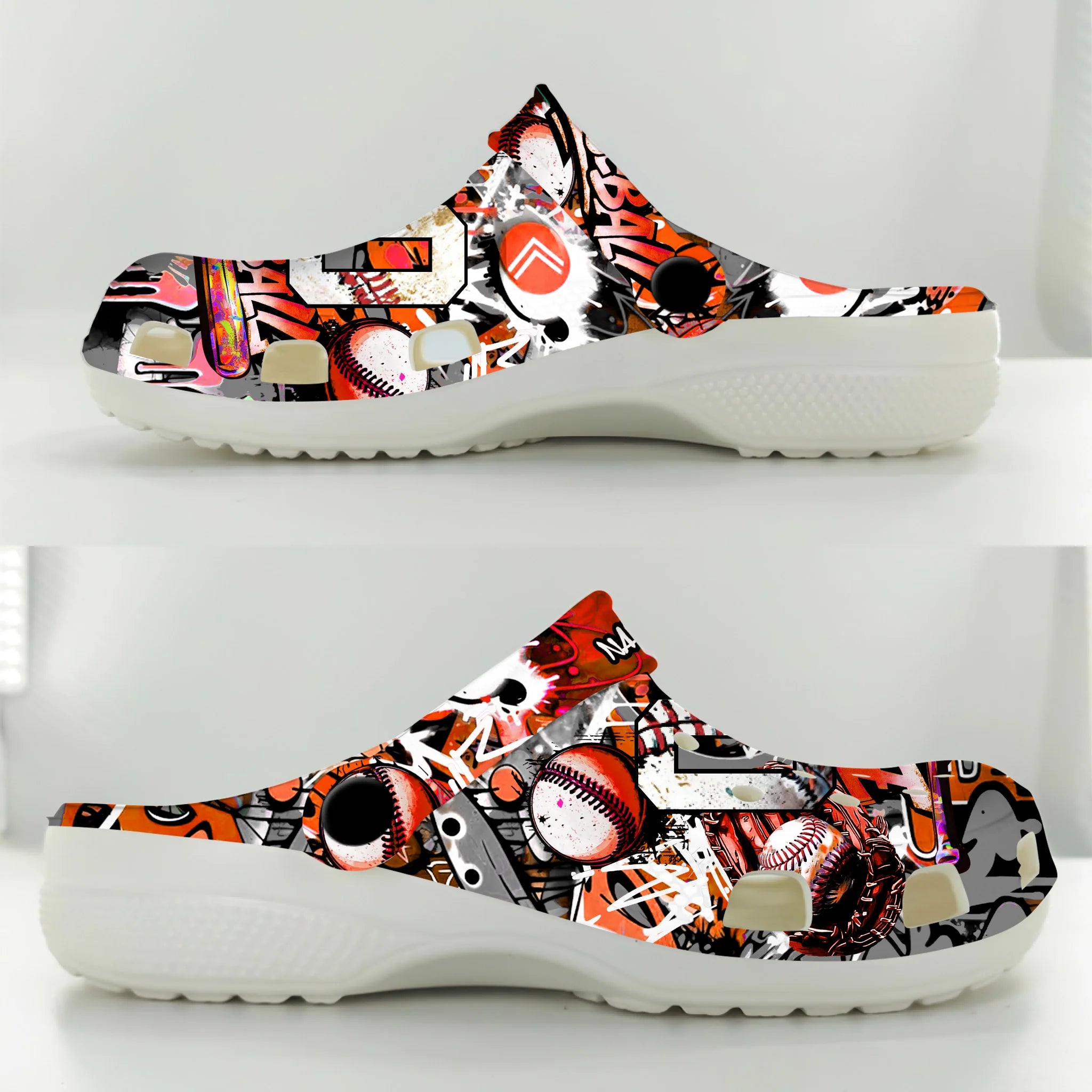 Orange Graffiti Baseball Sport Custom Crocs And Clogs Shoes Printed For Men Women And Kids