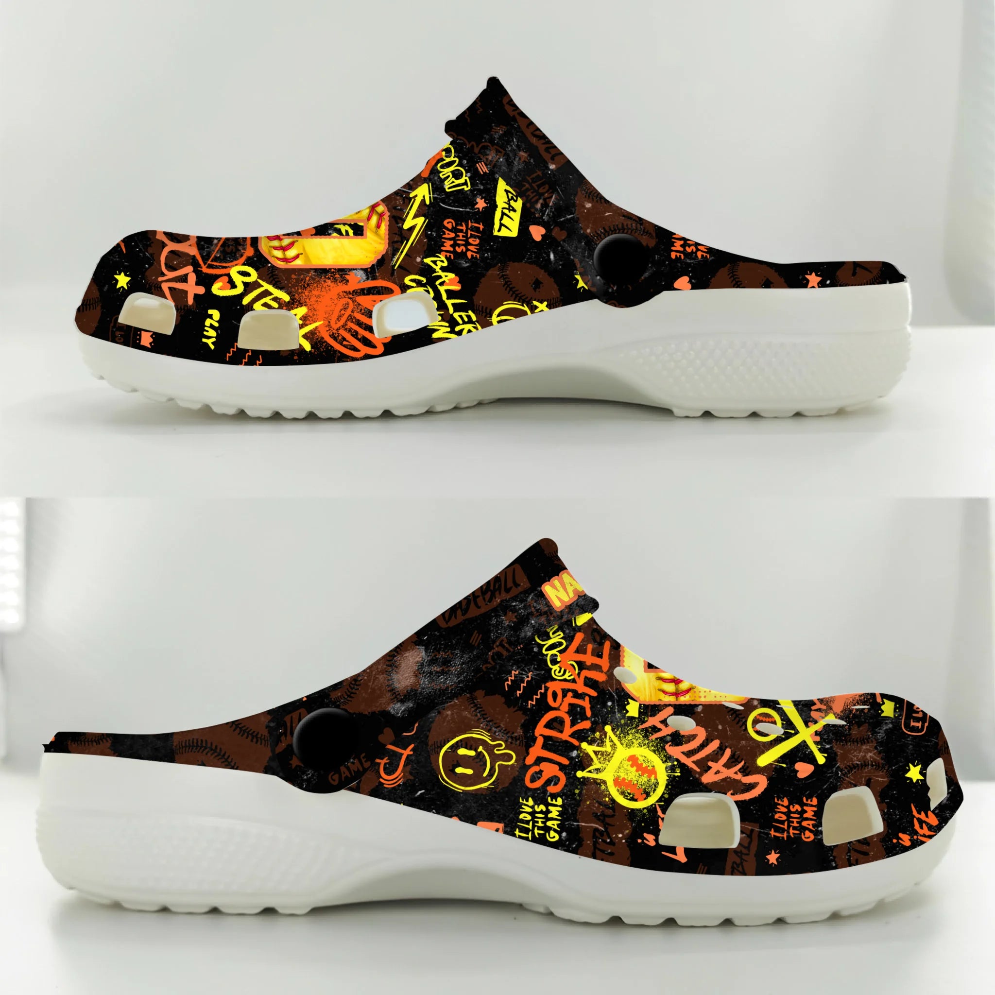 Orange Tag Out Softball Sport Custom Crocs And Clogs Shoes Printed For Men Women And Kids