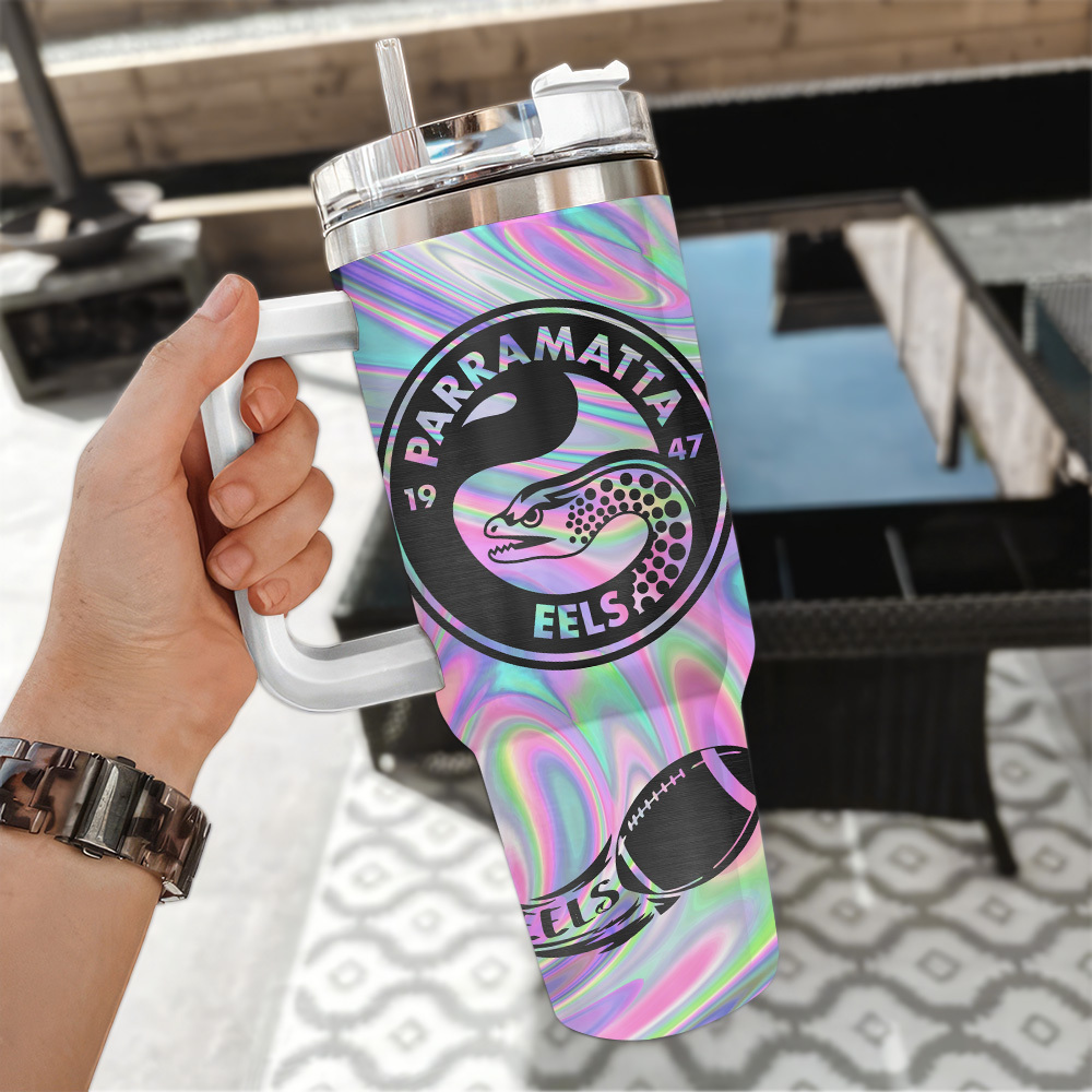 Parramatta Eels Nrl Hologram Effect Custom Stanley Quencher 40Oz Stainless Steel Tumbler With Handle