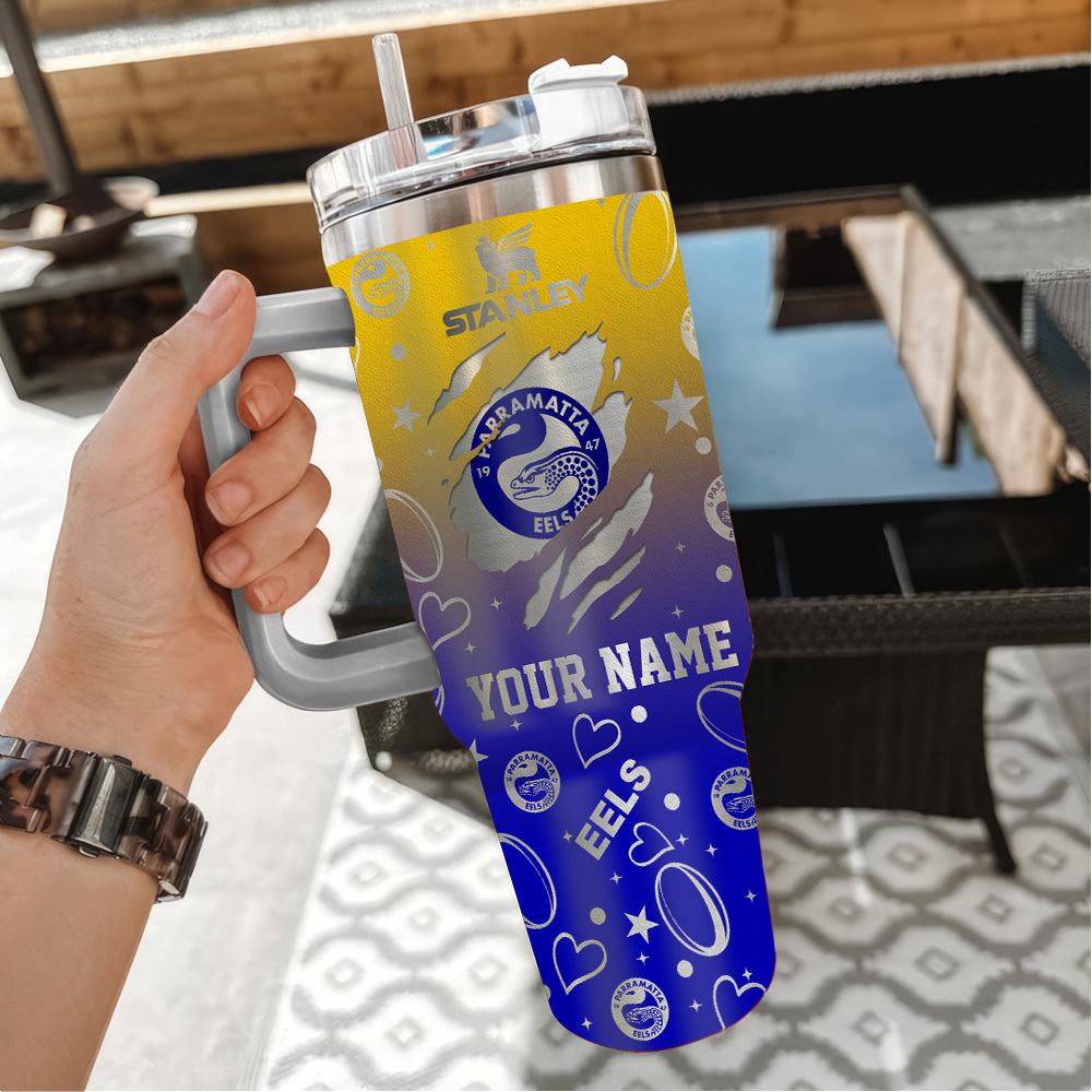 Parramatta Eels Nrl Silver Logo Custom Stanley Quencher 40Oz Stainless Steel Tumbler With Handle