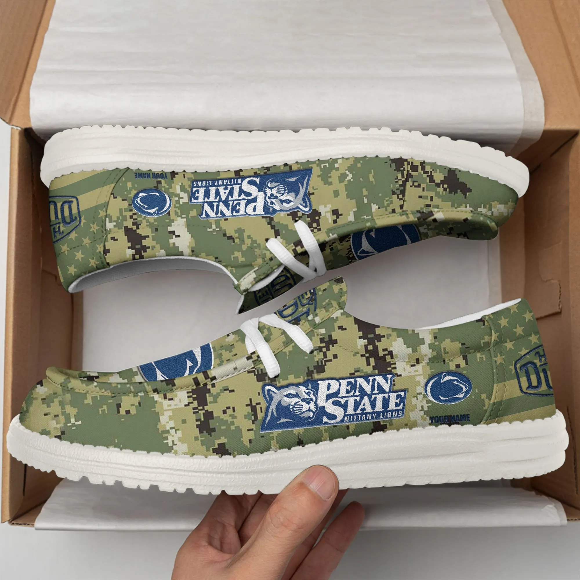 Penn State Nittany Lions 3D Print Dude Shoes Camo Green Best Gift For Sport Fan