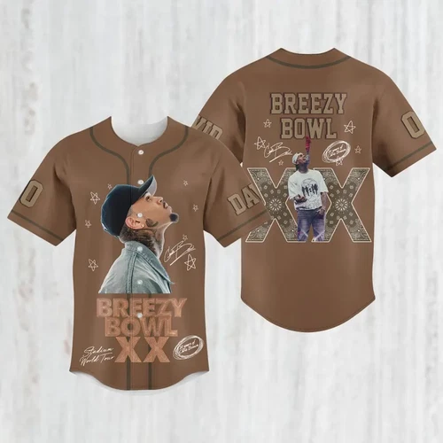 Personalized Chris Brown Jersey Merch Chris Brown Breezy Bowl XX Tour Baseball Shirt