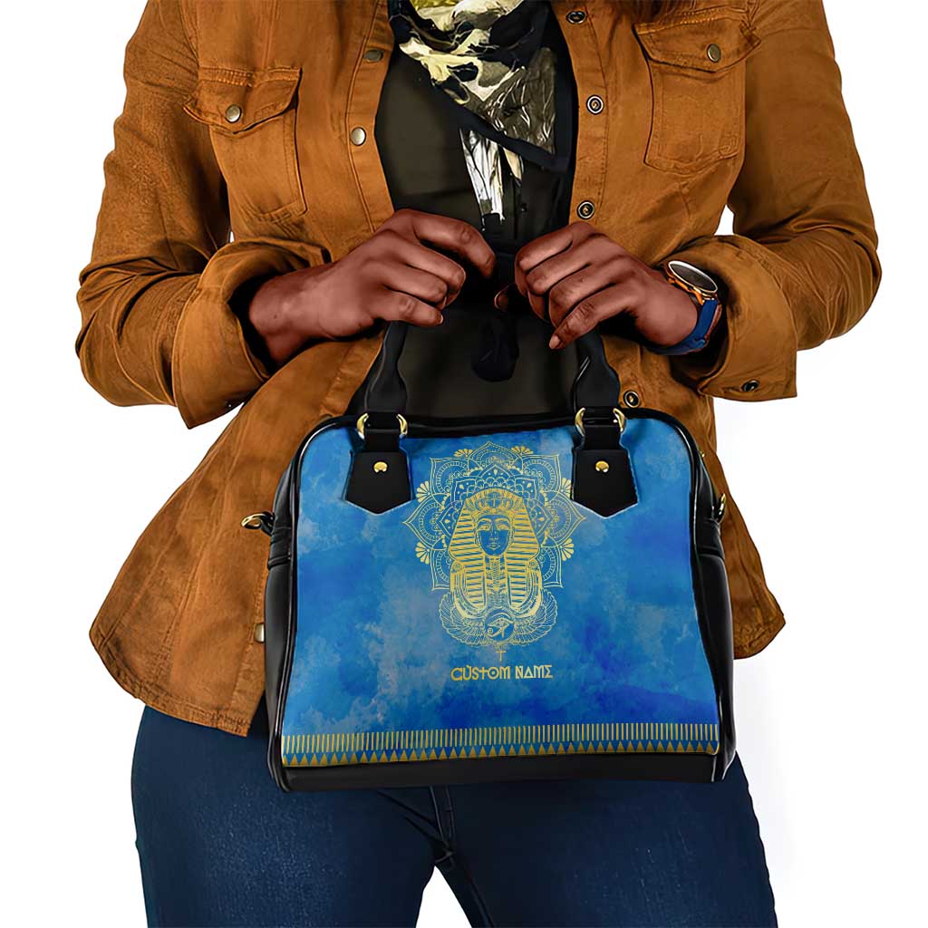 Personalized Egyptian Pharaoh Shoulder Handbag With Mandala And Eye Of Horus In Blue