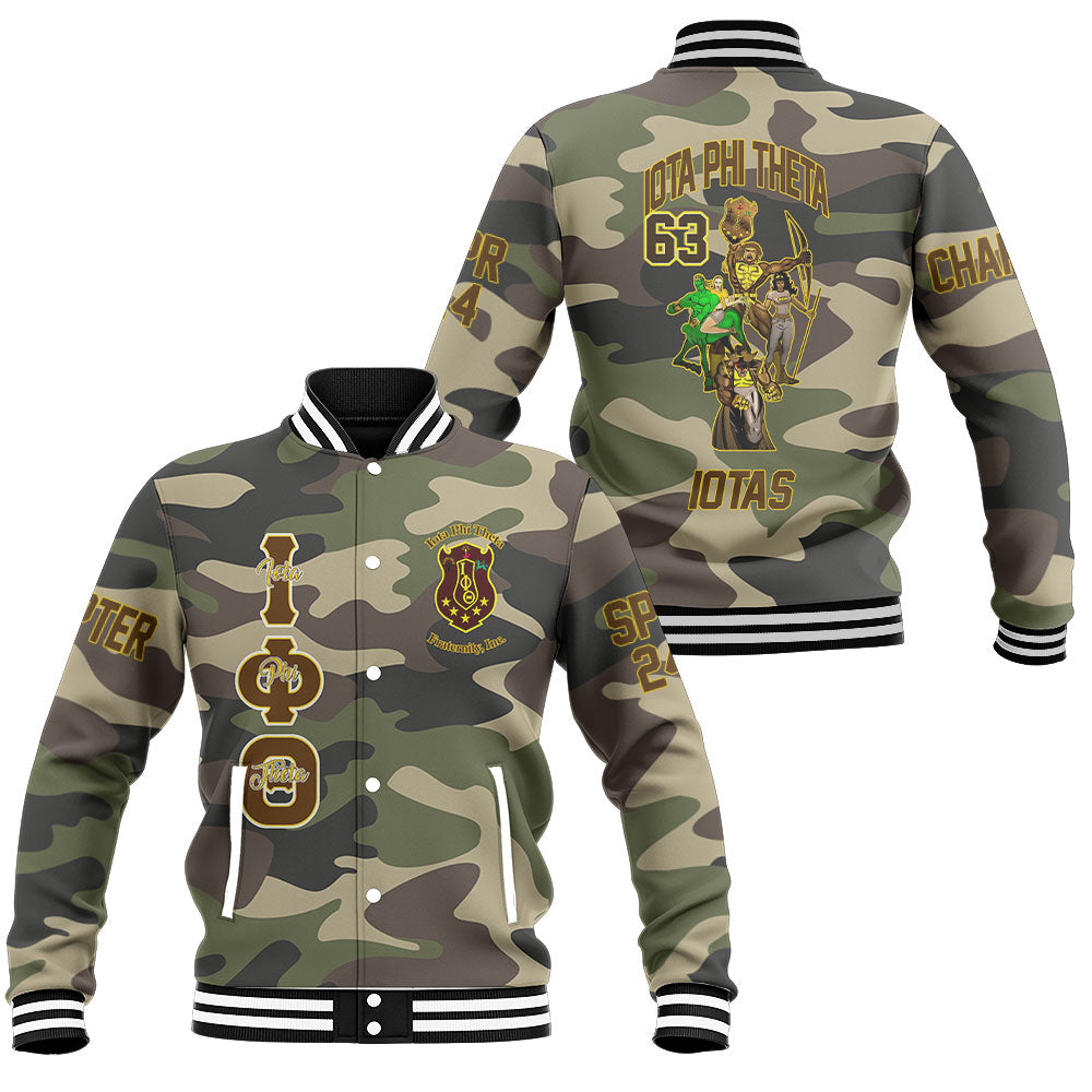 Personalized Iota Phi Theta Baseball Jackets Camouflage The Iota Centaur Warrior For Women Men