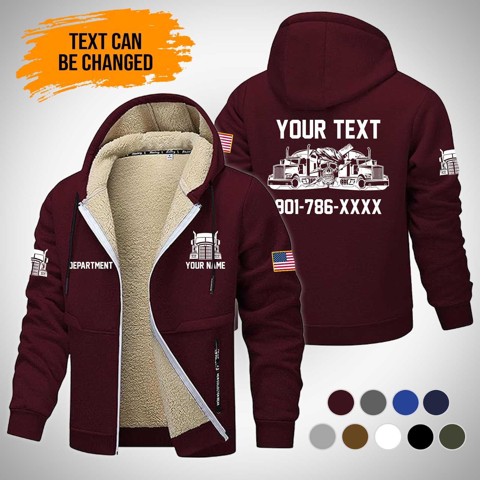 Personalized Name Semi Truck Department Lamb Fleece Thick Coat Wine Red