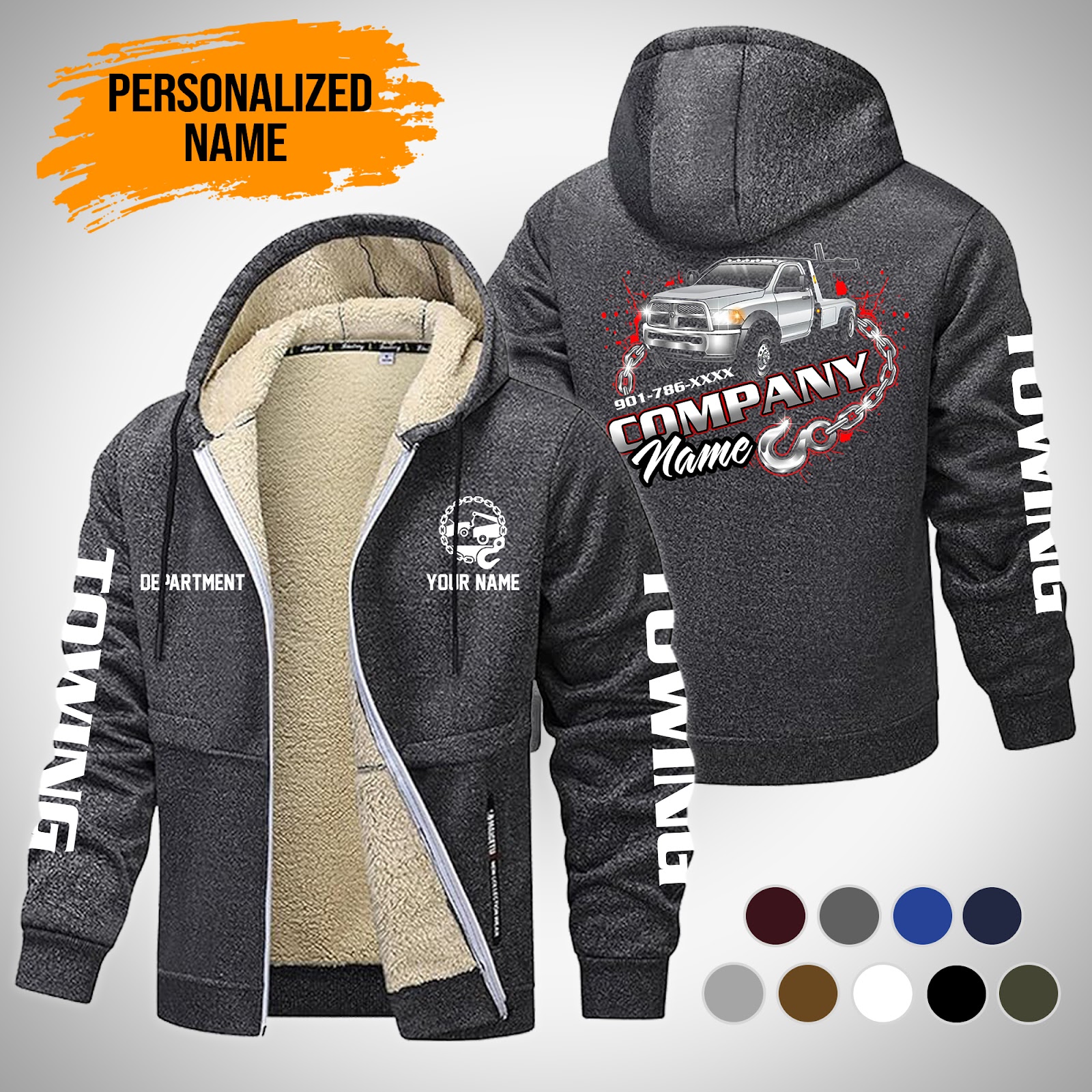 Personalized Name Tow Truck Lamb Fleece Thick Coat Dark Grey
