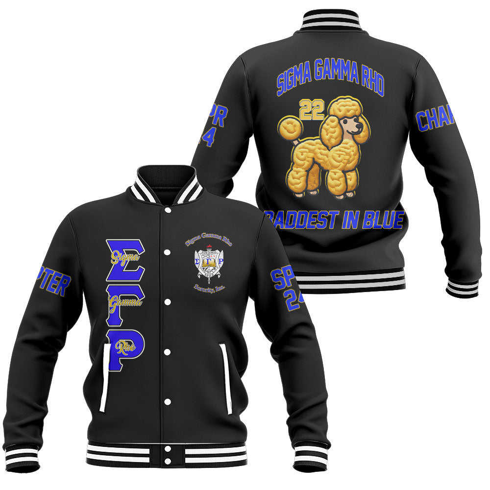 Personalized Sigma Gamma Rho Baseball Jackets Royal Blue The Queen Sgrho Poodles Style