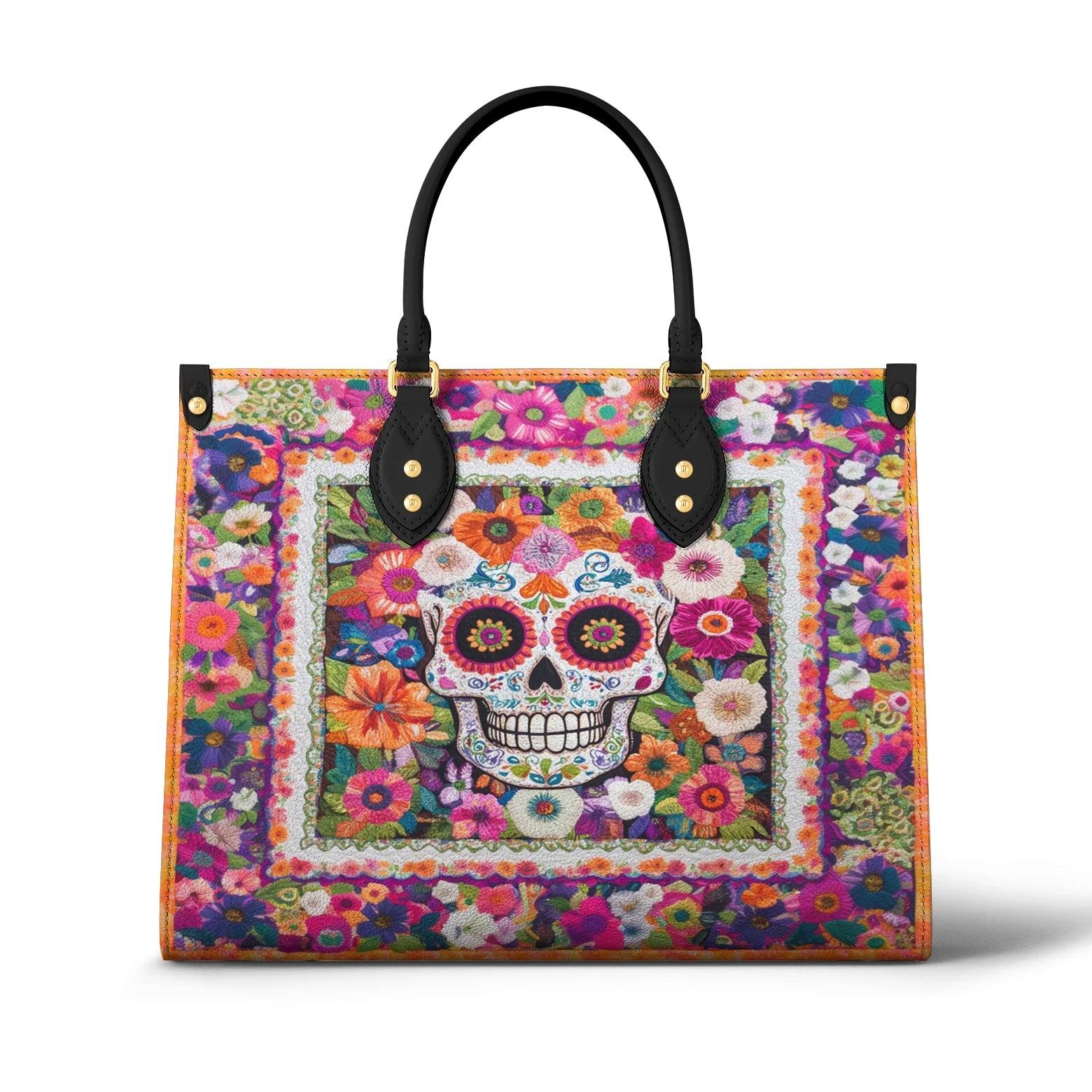 Personalized Vegan Leather Handbag Day Of The Dead Bloom