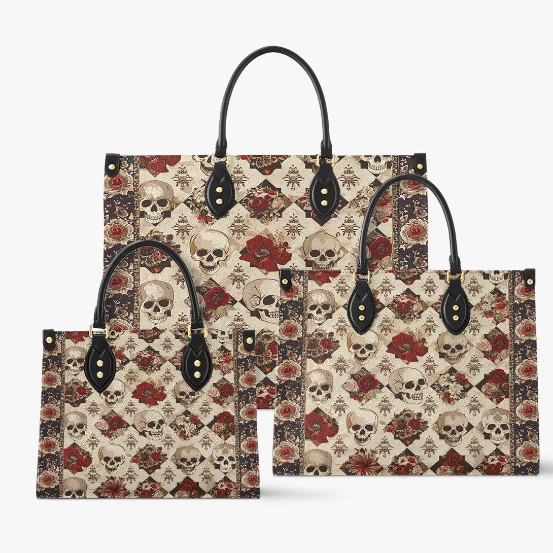 Personalized Vegan Leather Handbag Elegent Skull Roses