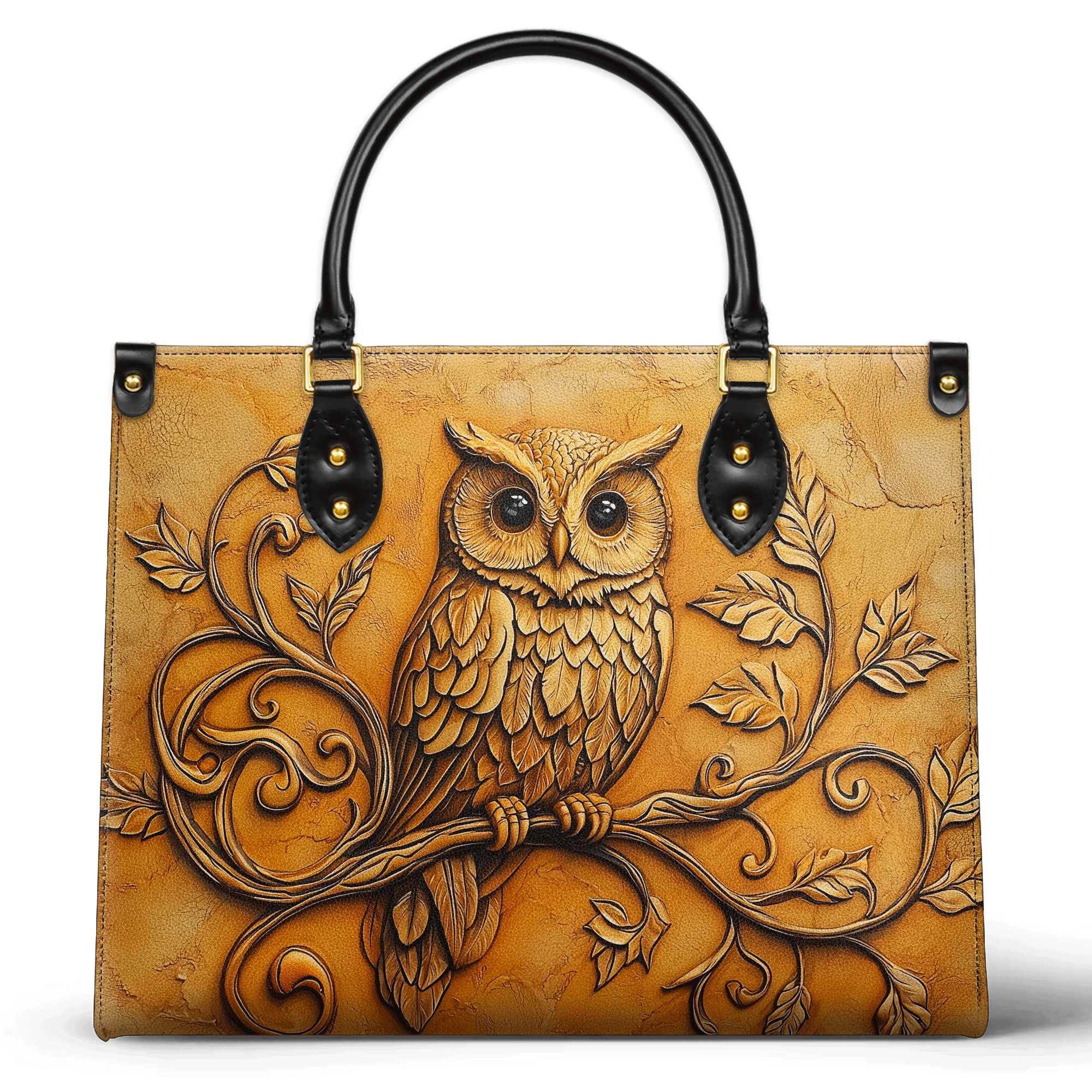 Personalized Vegan Leather Handbag Golden Grace Owl