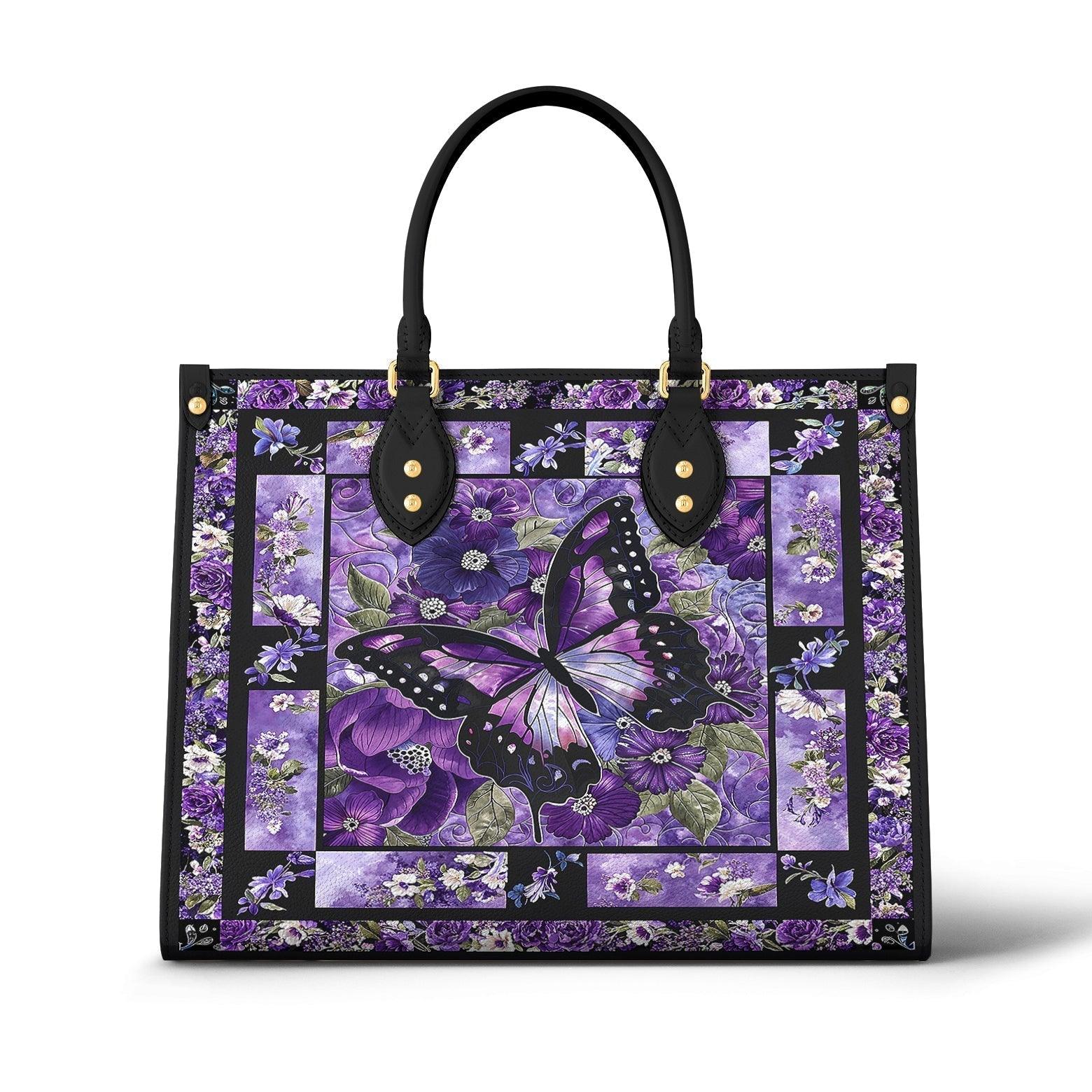 Personalized Vegan Leather Handbag Gorgeous Purple Butterfly Flowers