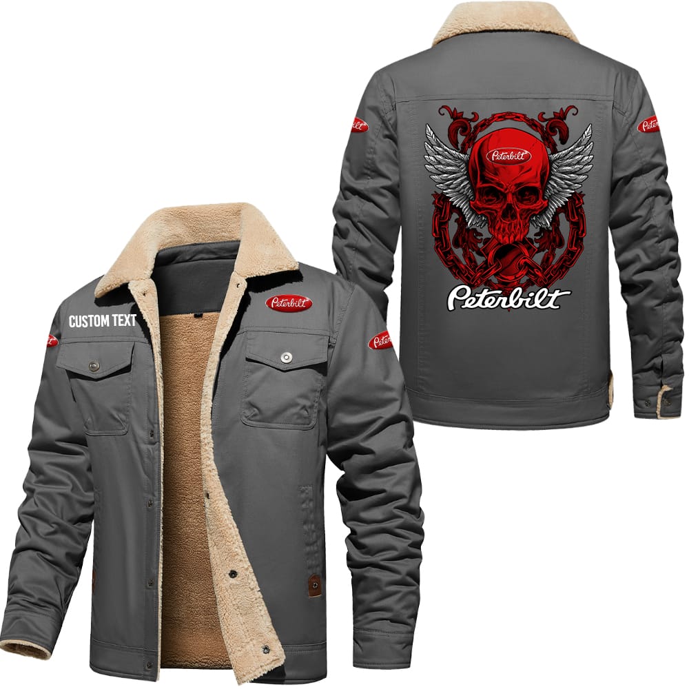 Peterbilt Custom Name Skull Design Cargo Fleece Lined Cotton Jacket