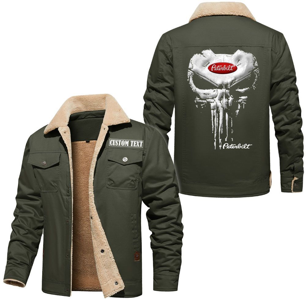 Peterbilt Logo Custom Name Cargo Fleece Lined Cotton Jacket Personalized Outerwear with Punisher Skull Design