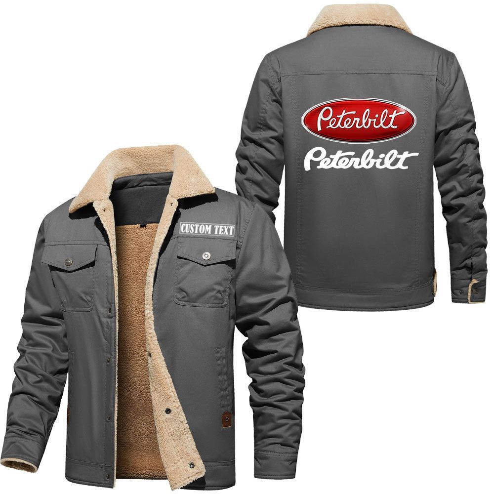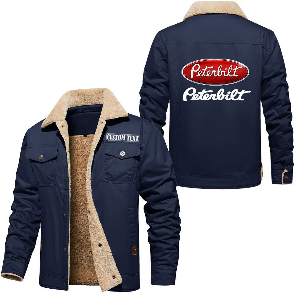 Peterbilt Logo Custom Name Cargo Fleece Lined Cotton Jacket Stylish Warm Personalized Outerwear