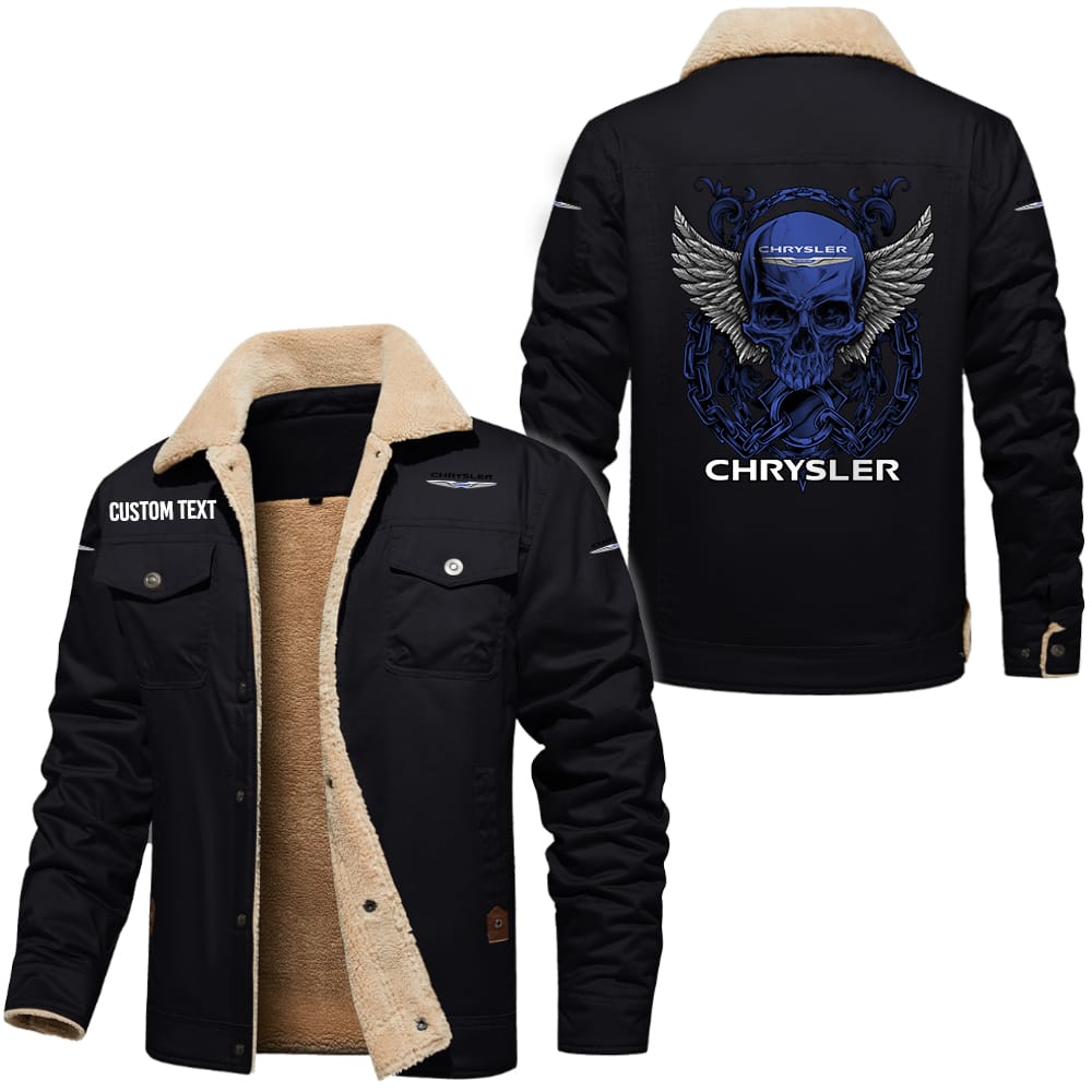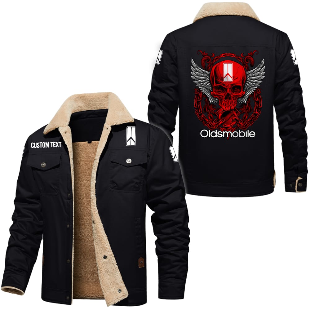 Peugeot Custom Name Skull Design Cargo Fleece Lined Cotton Jacket
