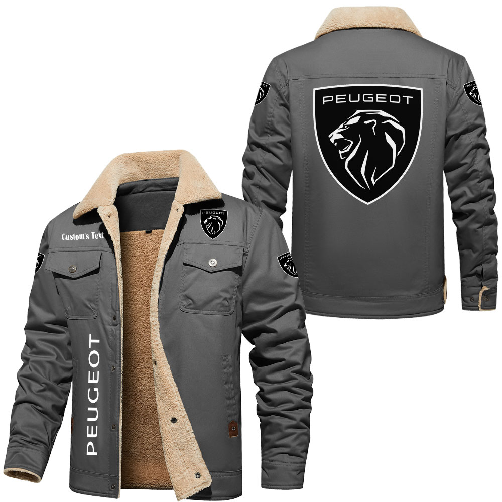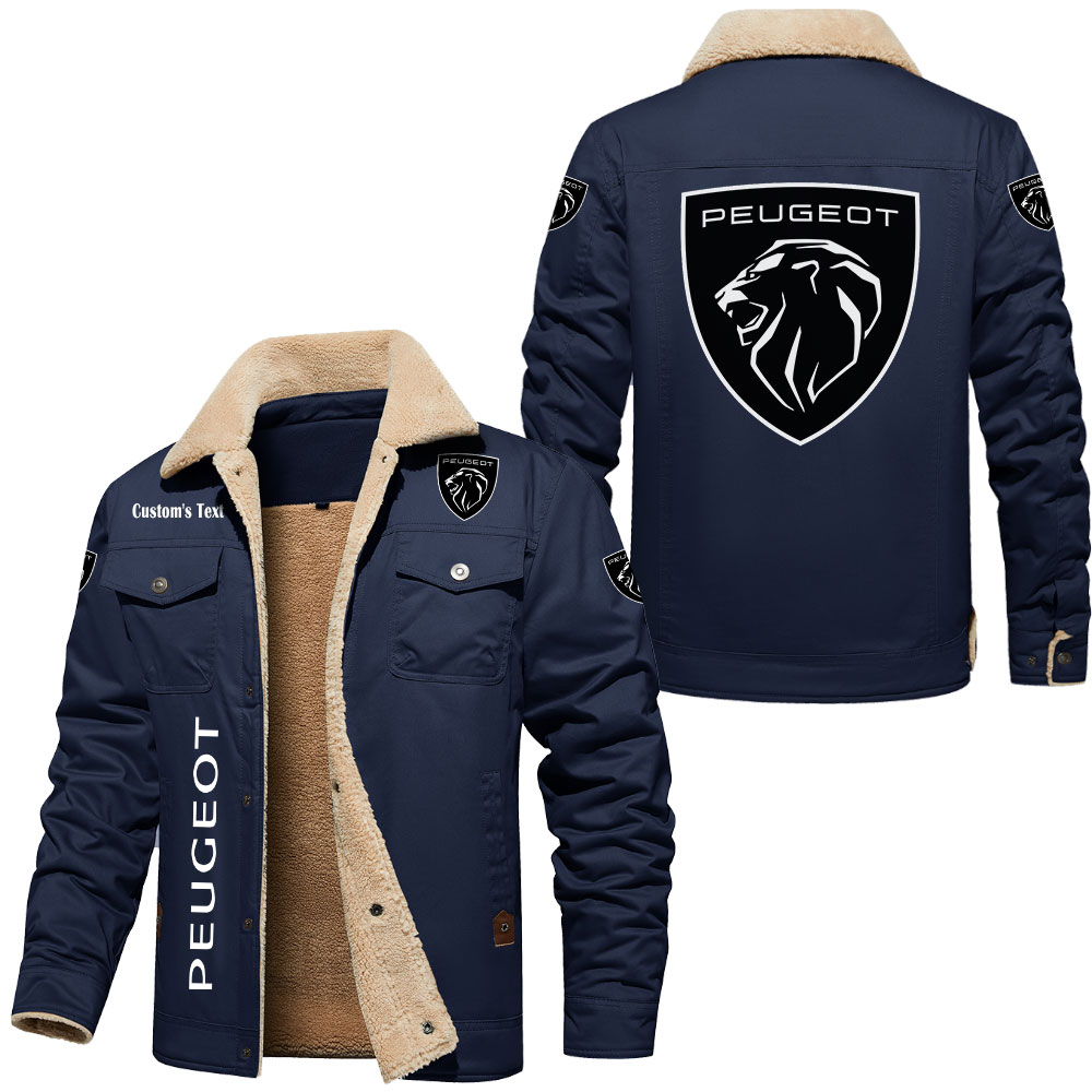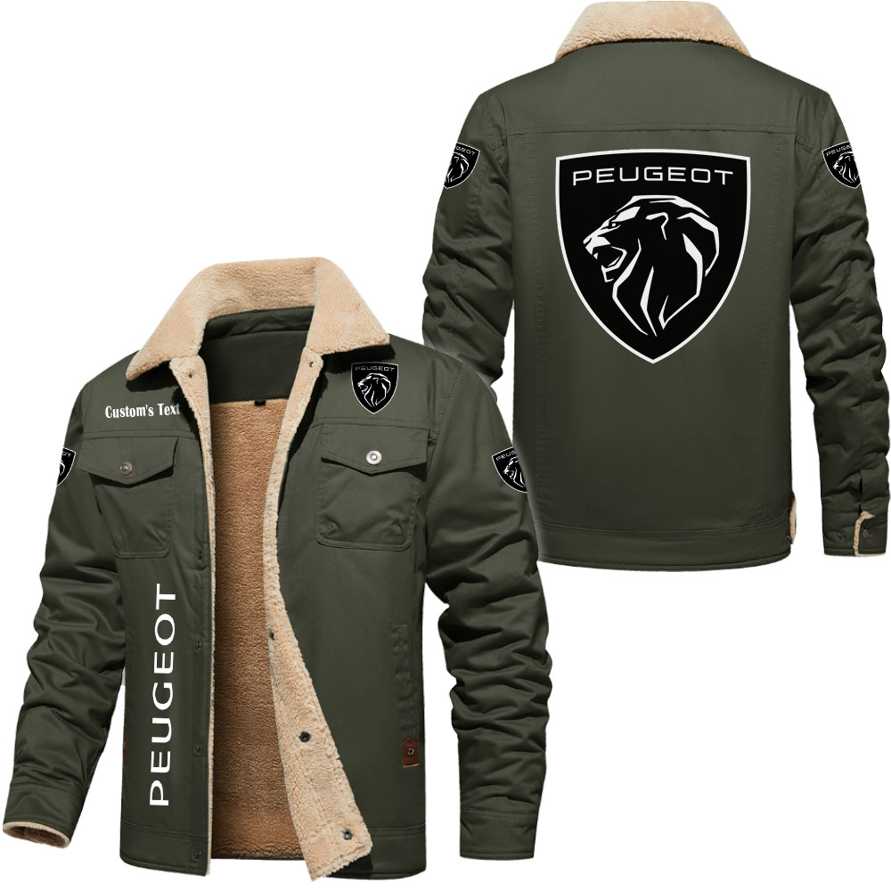 Peugeot Logo Custom Text Cargo Fleece Lined Cotton Jacket