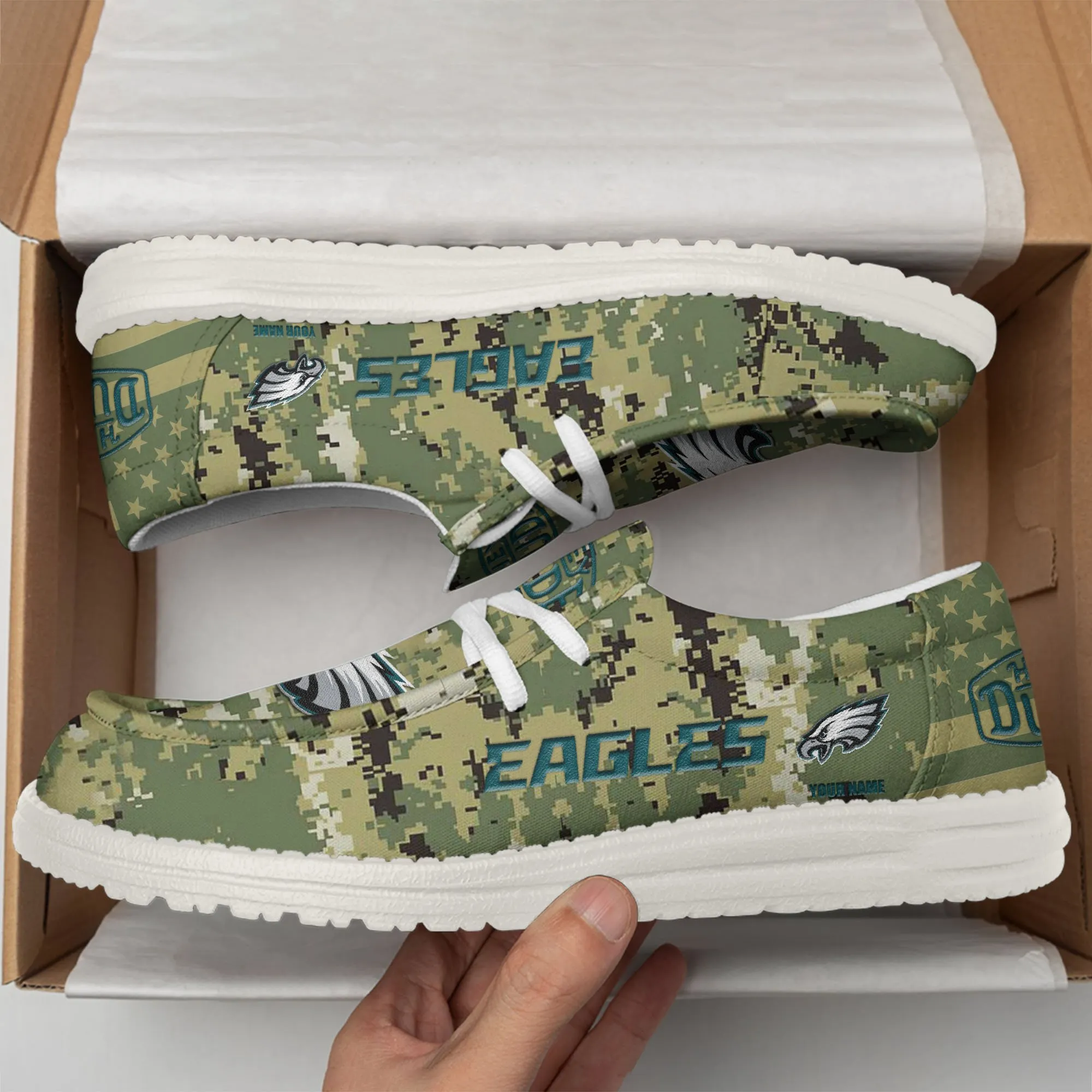 Philadelphia Eagles 3D Print Dude Shoes Camo Green Best Gift For Sport Fan