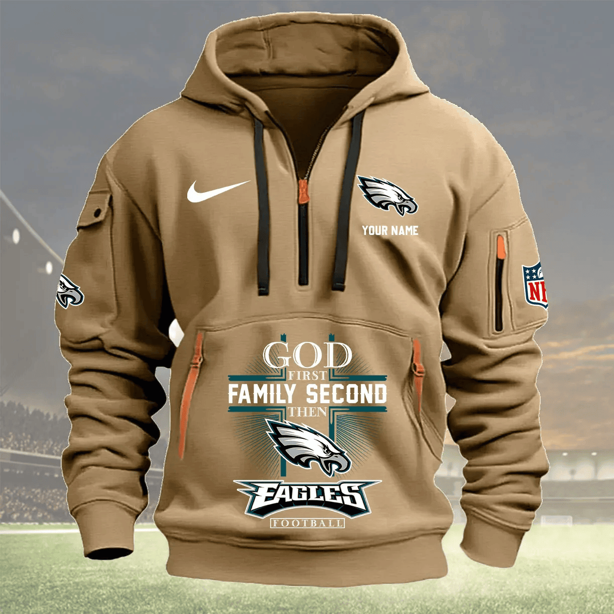 Philadelphia Eagles God Family Second Custom Quarter Zip Hoodie New Season 2025 Collection