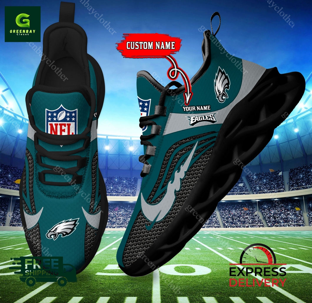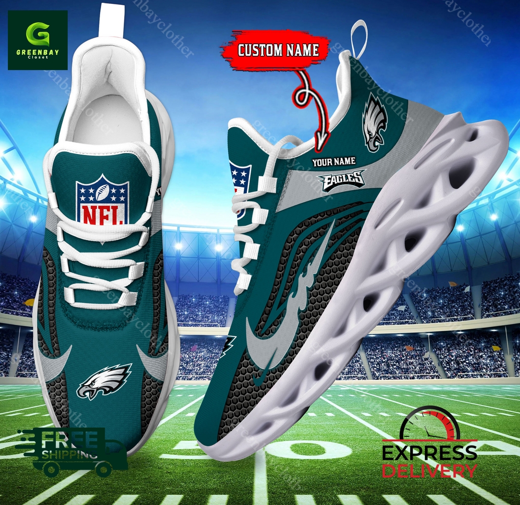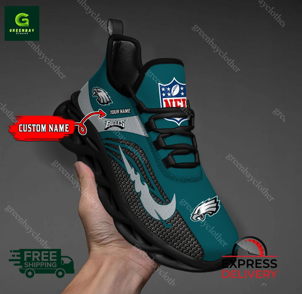 Philadelphia Eagles Max Soul Shoes Sneakers Printed White And Black Sole For Men And Women