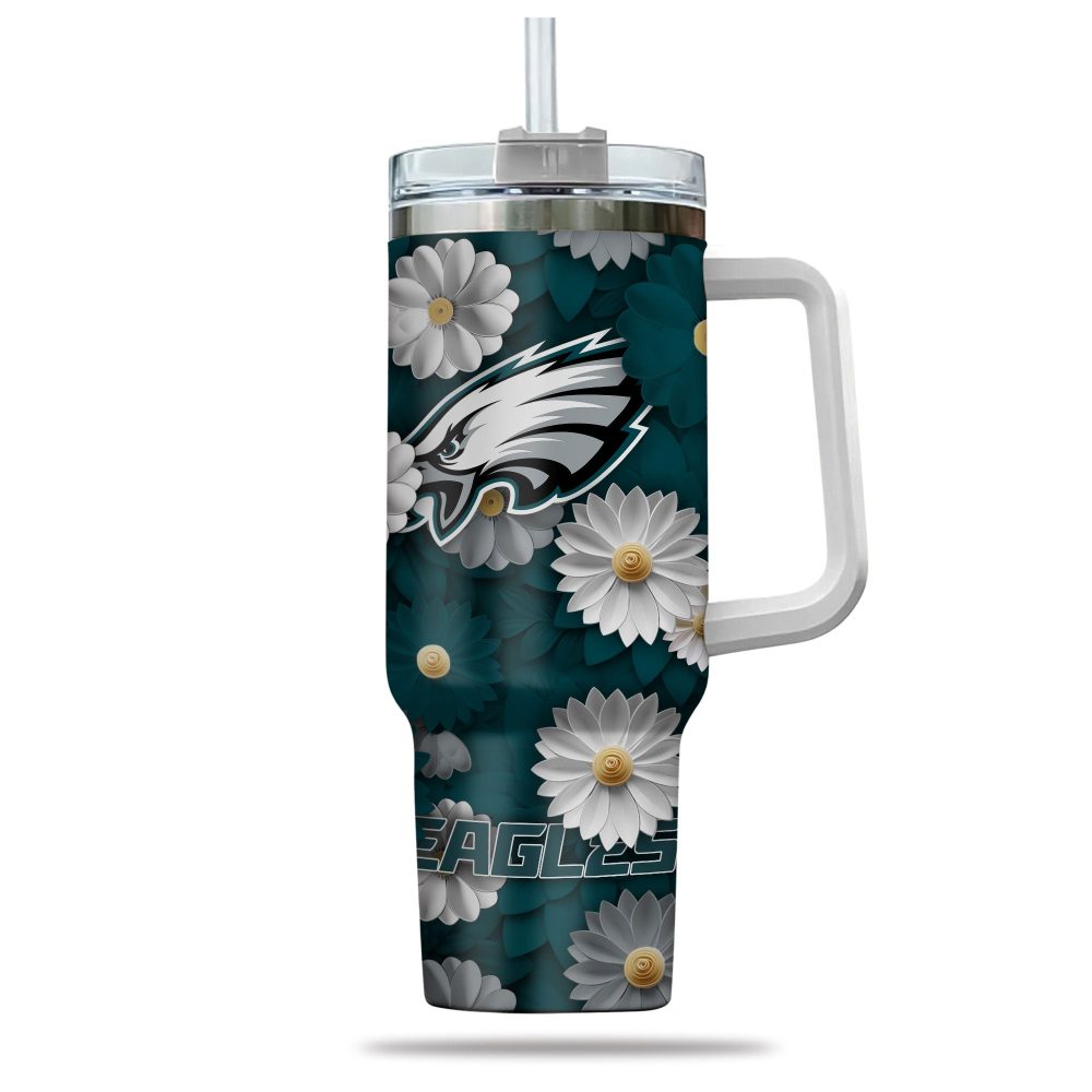 Philadelphia Eagles Nfl Flowers Custom Stanley Quencher 40Oz Stainless Steel Tumbler With Handle