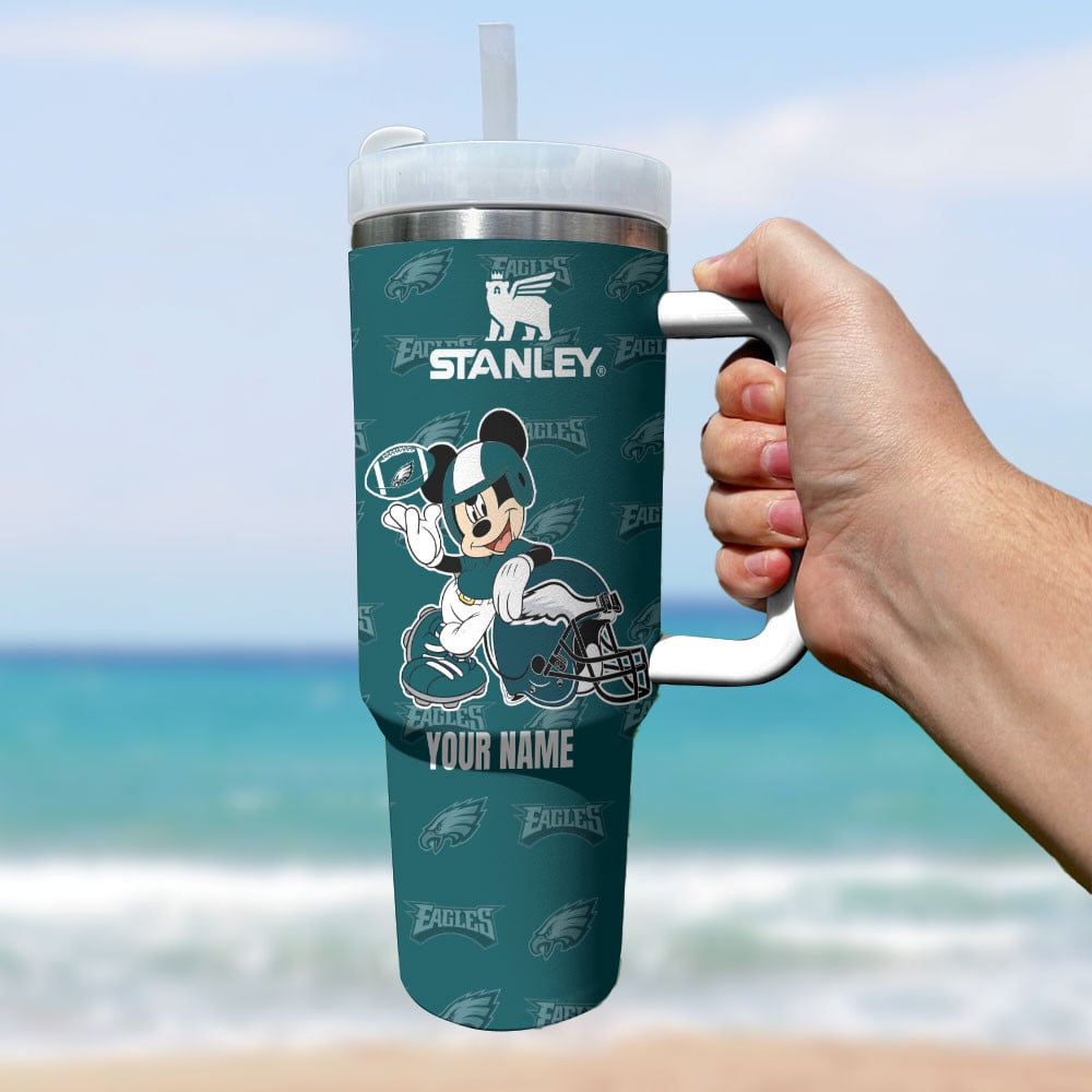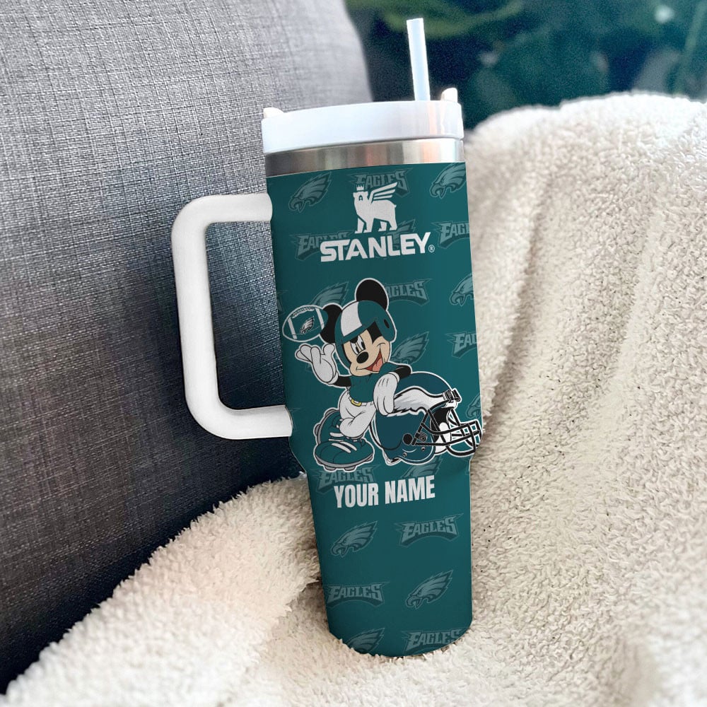 Philadelphia Eagles Nfl Mickey Mouse Custom Stanley Quencher 40Oz Stainless Steel Tumbler With Handle
